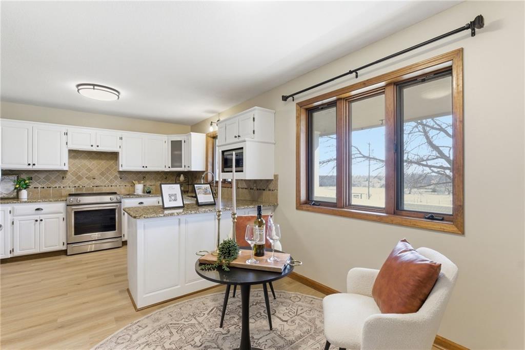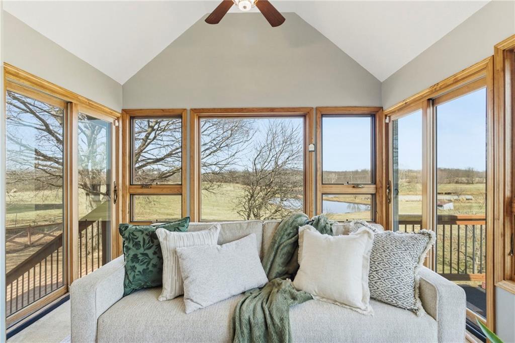 Looking for a peaceful retreat? Located at the end of the street where neighborhood meets acreage. Views of the land for miles and miles. This charming home is perfectly set against a serene backdrop of open land, a tranquil pond, and mature trees, offering a true sense of calm and privacy. Enjoy the views year-round from the beautiful four-season room, where nature becomes part of your everyday living. Inside, you’ll find an inviting living room anchored by a lovely fireplace, perfect for cozy evenings. The fabulous kitchen shines with stainless steel appliances, granite countertops, and light, bright white cabinetry—and all appliances stay with the property for added convenience. New flooring enhances the entry, kitchen, and dining areas, while new designer carpeting on the stairs adds an upscale, cozy touch. The finished lower level provides a second living space along with a full bath, offering flexibility for guests, a home office, or recreation. All bathrooms have been updated with today’s stylish finishes. Step outside to a spacious deck overlooking the picturesque landscape, or relax on the welcoming front patio, enjoy stunning sunsets! So close to Smithville Lake where 7,190 acres lake offers camp grounds, boating, marina, fishing, swimming, and so much more! This home is truly special. Located in the highly rated, Smithville School District! So much packed in one location!