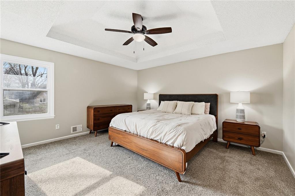 Great property in an established neighborhood featuring plenty of space and thoughtful updates! Enjoy the screened-in sunroom and a finished basement, all complemented by a large, fenced backyard. The main floor offers a spacious primary suite with a private bath. Upstairs, you'll find three additional bedrooms and a full bath. A non-conforming 5th bedroom with a large closet provides the perfect space for a home office or workout area. Conveniently located near shopping, schools and everything Lee's Summit has to offer.