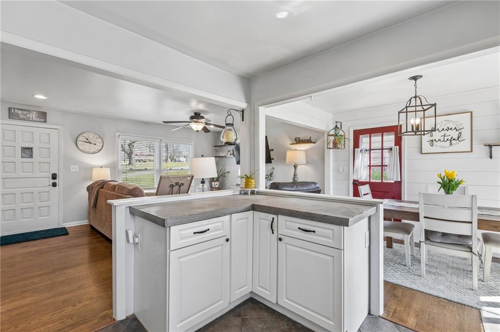 If you've been waiting for a home with character, charm and just the right amount of style, this is it! Nestled in Meadowbrook Estates, this character-filled home blends charm, warmth and thoughtful updates all in the right ways. From the moment you arrive, you'll notice the freshly painted exterior and inviting front porch (new in 2022)! Step inside to find hardwood floors flowing throughout the main level and bedrooms, paired with updated lighting that gives the home a unique, cozy feel. The dining room makes a statement with trendy shiplap walls, while the kitchen offers an open, airy layout complete with concrete countertops and a farmhouse sink! All appliances stay with the home! Both full bathrooms feature antique vanities that add a unique touch you won't find in a cookie-cutter home. Downstairs, you'll love the cozy sitting room with built-in shelving- perfect for a reading nook, office or flex space-- plus a converted garage that now serves as a spacious family room (which could easily be converted back to a garage!). Step outside and you'll find even more to love: a brand new deck (2025), a fire pit are ready for entertaining and a shed with electricity and lighting- ideal for hobbies, storage or your next project! With character around every corner, this home is truly one-of-a-kind!
