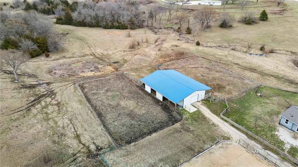Rare opportunity to own a true equestrian estate on nearly 44 acres in Franklin County. This 5 bedroom, 4.5 bath home is paired with an impressive horse setup featuring a 12 stall stable with tack, multiple fenced and cross-fenced pastures, and dedicated riding space, including arena area ready to be brought back to life. And just wait until you see the SHOP!!! The property offers the ideal foundation for a working horse operation, training facility, or private retreat. With established infrastructure already in place, this is a rare chance to create something truly special! Does your vision include the business aspect of owning such a vast horse property? The opportunities are endless. The home itself provides generous living space with a functional layout, large kitchen, and finished areas designed for everyday comfort or hosting after long days outdoors. Expansive views in every direction highlight the natural beauty of the land, with rolling terrain and room to roam. While the property may benefit from updates and personal touches, the bones, layout, and land are all here, making it an incredible opportunity for buyers with vision. Located just minutes from Pomona and with convenient access to I-35, this property combines peaceful country living with accessibility to Ottawa, Lawrence, and the Kansas City metro. Horse properties with this level of infrastructure and acreage rarely come available. Bring your vision and make it your own.