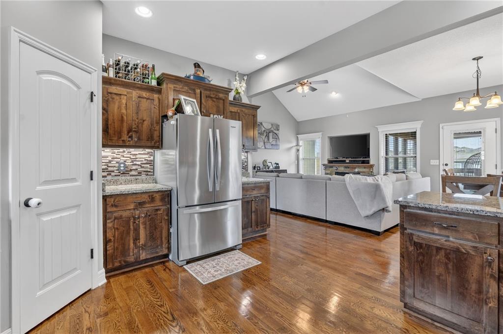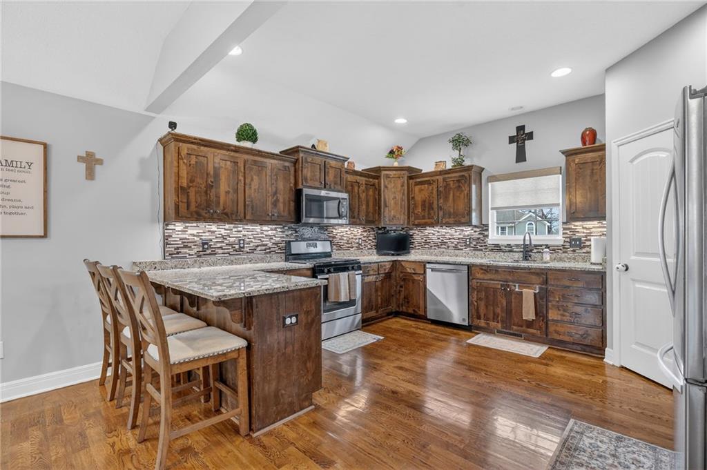 This extensively upgraded 4-bedroom split-level home offers exceptional features and thoughtful custom touches throughout. The interior showcases granite countertops in all bathrooms & kitchen, a custom tile backsplash, hardwood flooring in the kitchen & dining areas, and tile flooring in the bathrooms. The spacious kitchen is equipped with abundant cabinetry & a convenient corner pantry. The private primary suite includes a walk-in closet, jetted tub & separate shower. The finished basement expands the living space with a large family room, fourth bedroom & full bathroom—ideal for guests or additional living flexibility. Car enthusiasts and hobbyists will appreciate the oversized 3-car garage featuring an epoxy floor, custom trim & a dedicated barber room. Outdoor living is equally impressive with a covered, screened-in deck complete with custom lighting and built-in speakers, as well as a covered screened patio. The backyard is designed for entertaining with a custom outdoor grill area, bar with sink & a spacious patio. Additional exterior features include two storage sheds—one attached to the home with a concrete floor for mower and equipment storage & a fully equipped “she shed” with electricity, lighting, and TV setup. The front of the home is enhanced with custom landscaping and full LED exterior lighting, providing standout curb appeal. This home blends functionality, comfort, and high-end upgrades—ready for its next owner.