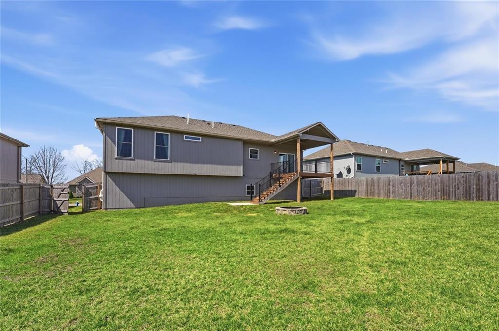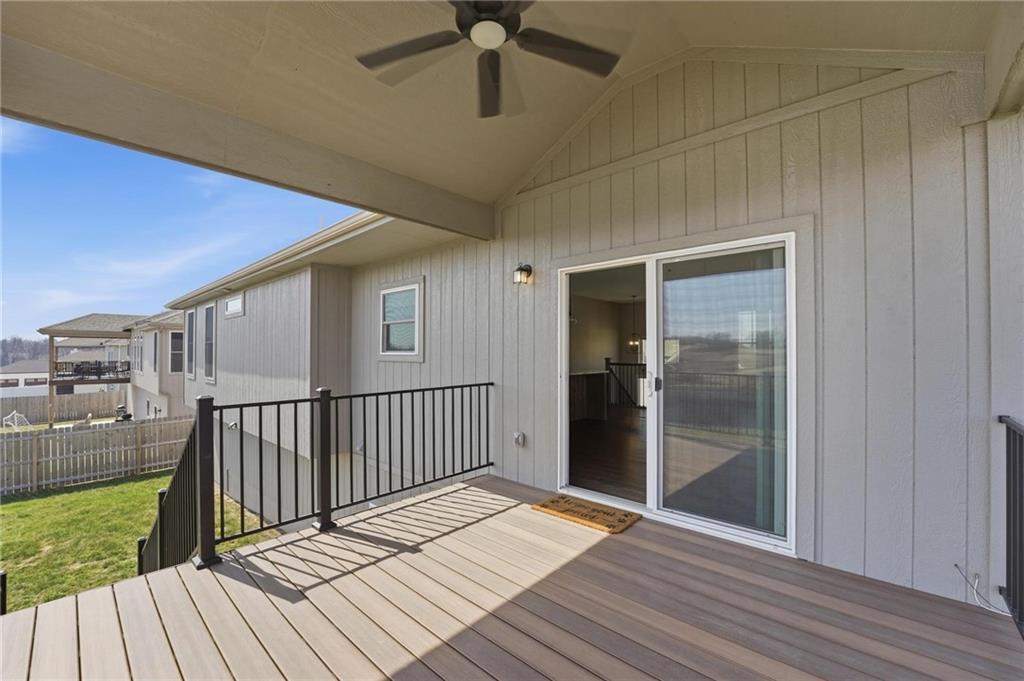 This stunning home welcomes you with an inviting open concept layout featuring beautiful hardwood floors that flow seamlessly through the kitchen, dining, and living areas. The kitchen is a standout with brand new $10,000 Café appliances, including a refrigerator, stove, microwave, and dishwasher, along with quartz countertops, a spacious center island with bar seating, tons of cabinetry, and a generously sized walk-in pantry. The washer and dryer are also included for added convenience, making this home completely move in ready. Natural light and tall ceilings create a bright and welcoming feel throughout. Just off the dining area, you’ll find a covered deck that’s perfect for relaxing or entertaining. The primary suite offers comfortable space along with a walk-in closet, double vanities, and a walk-in shower. Downstairs, the finished lower level provides a large rec room and a full bathroom, offering plenty of additional living space. Fenced in yard. HUGE three car garage with tons of additional storage space. This home has so much to offer, you won’t want to miss it!