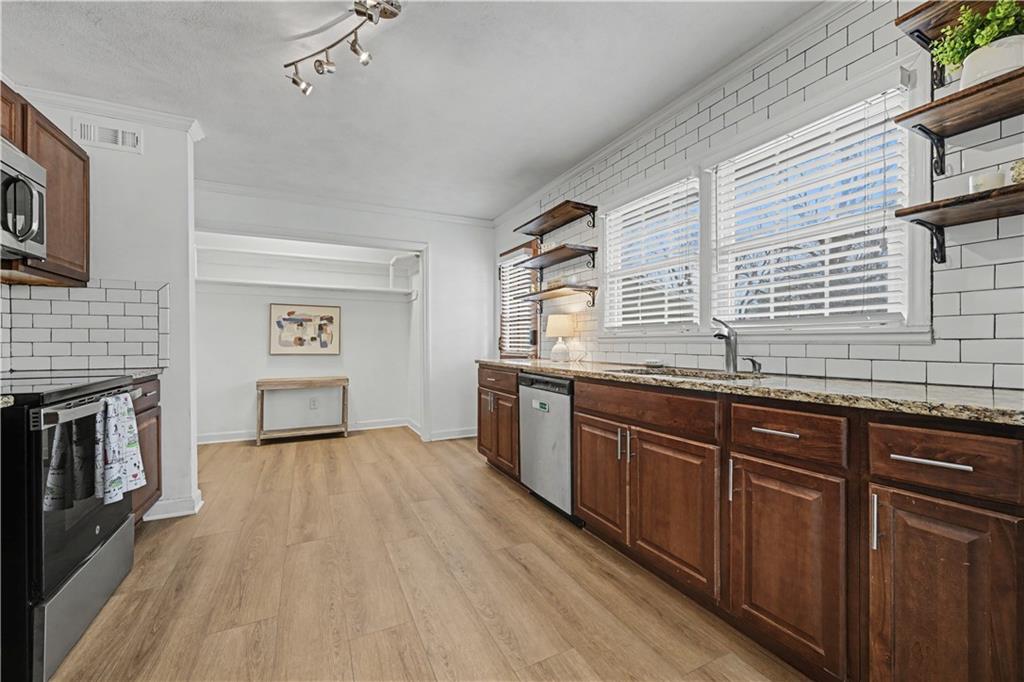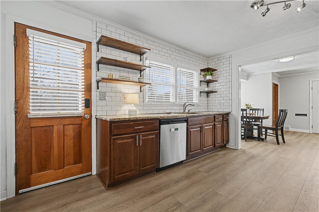 This 4-bedroom, 3-bath ranch is the kind of home that just feels good the moment you walk in—warm, inviting, and clearly well cared for over the years. The main living space is made for connection, whether it’s slow mornings, busy weeknights, or gathering with friends, all flowing effortlessly into the kitchen and dining area so no one feels left out. Tucked just off the family room, the office/den with French doors creates a quiet, private space—perfect for working from home or sneaking away with a good book. The kitchen and dining area feature recently updated flooring and stove that was purchased in 2025. Step through the mudroom and out back to a fenced yard that’s ready for relaxing evenings under café lights and built in speakers for easy outdoor living. The wood fence also offers great privacy. There is a nook right at the end of the kitchen which could be many things... a pantry, coffee bar, wine bar, built in desk/office area or even with a little professional help the washer and dryer could be moved here. The possibilities are endless. Downstairs, the finished basement gives you that extra space everyone wants—movie nights, game days, or a hangout spot for guests—while still leaving room to make it your own. Two bedrooms and a bathroom in the basement as well as the laundry room makes a perfect area for guests. The HVAC system is only four years old, offering comfort you can count on. The home has programable NEST thermostat as well as two NEST smoke/carbon monoxide detectors. Gutter guards have been added to the home. The mounted television over the family room fireplace will remain with the home. All of this in a location close to shopping, dining, and quick highway access—making everyday life just a little bit easier.