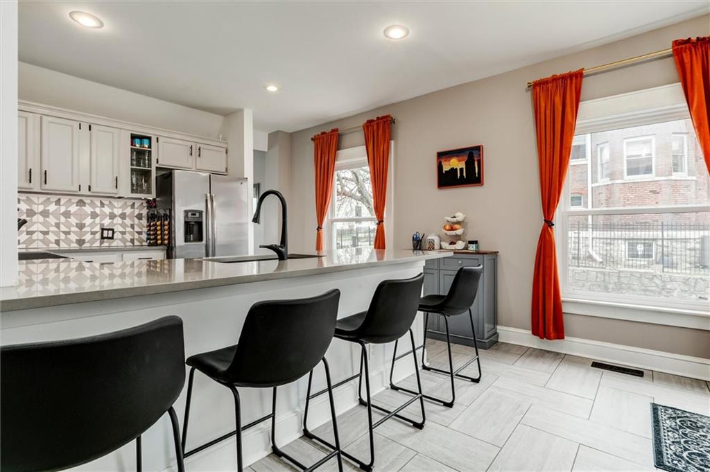 Spacious & spectacular! This Longfellow stunner has an abundance of space, gorgeous updates, and all the amenities you could want - all on an oversized lot. The first floor boasts a family room addition, half bath, generous dining and living rooms, and an updated eat-in kitchen that is perfect for entertaining and back yard bbq's. Upstairs there are 5 generously sized bedrooms including a full primary suite with walk-in closet & ensuite, 3 updated bathrooms, and a bonus flex room for storage or office space. The third floor is a perfect guest suite with bedroom & full bath. 2918 Harrison is situated on a beautiful, oversized lot with extensive landscaping improvements, a large private driveway, and plenty of room for a future garage. A quick stroll will take you to many of KC's best bar's and restaurants in Martini Corner & other close neighborhoods. Significant improvements include new roof (2023), new siding (2023), new windows (2023), updated mechanicals, and fresh landscaping. Don't miss this fabulous opportunity!