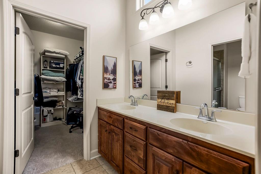 Stunning 4 bedroom, 3 bath reverse 1.5 story nestled on a cul-de-sac, offering a walk-out lower level to a fully fenced backyard. This meticulously maintained home features fresh paint inside and out, new carpet in bedrooms and stairs and newly landscaped grounds — truly move-in ready. The thoughtful layout places the primary suite and a second bedroom and full bath on the main floor, while the lower level offers a second living area, two additional bedrooms, and a third full bath — just the right amount of space for everyone. The open floor plan is packed with modern features and designed for comfortable living and entertaining. At the heart of the home, the kitchen, dining area, and great room flow seamlessly together, anchored by a cozy gas fireplace. The kitchen showcases custom cabinetry, granite countertops, a large island, and a pantry for ample storage. A wall of windows floods the great room with natural light and frames beautiful views of the backyard. Step into the sunroom, an additional 110 sq feet, is just off the dining area — the perfect spot for your morning coffee or evening wind-down, with more serene backyard views. The lower level recreational room walks out to a patio and the fenced backyard, and the property extends beyond the fenced area for added space. Conveniently located near highways, retail, dining, and entertainment — this home truly has it all!