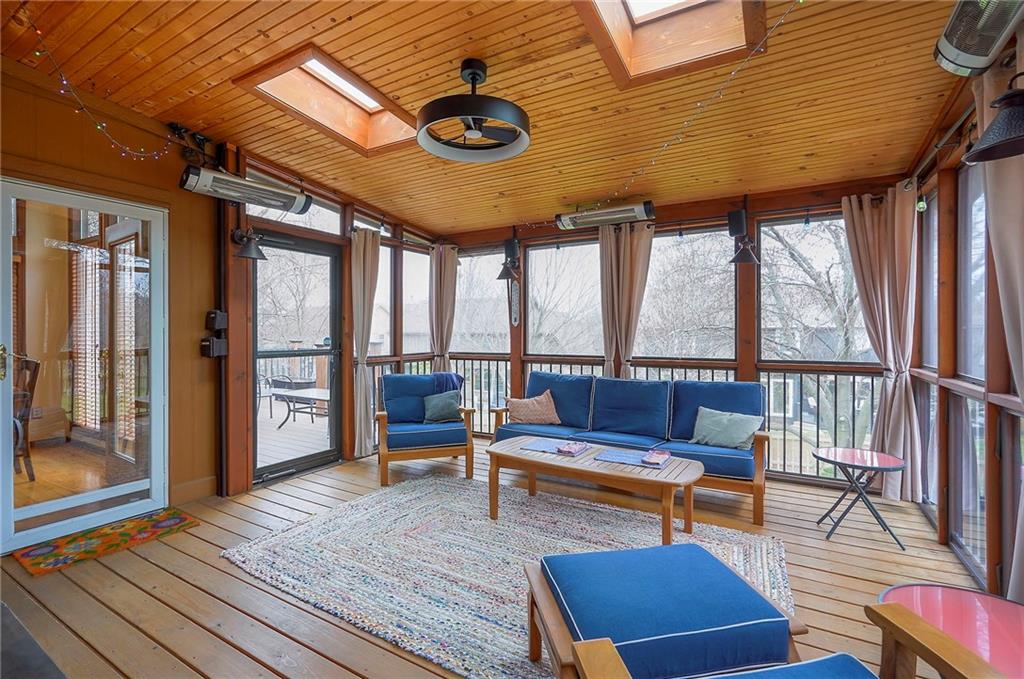 This is a Beautiful 1.5-Story Home (Newer Roof) Situated on a Quiet Cul-de-Sac Street in Coveted Amber Meadows, a Welcoming Rodrock Community Known for Its Prime Overland Park Location and Friendly Neighborhood Feel! The Main Floor Offers a Comfortable Flow with Carpeted Formal Living and Dining Rooms, Along with a Warm Family Room and Hearth-Kitchen/Breakfast Area Connected by a Shared Gas Log Fireplace! Radiant Hardwoods Extend from the Entryway into the Family Room and Through the Hearth-Kitchen/Breakfast Area, Creating an Inviting Setting for Everyday Living! The Main-Floor Primary Bedroom Is a Relaxing Retreat with a Tray Ceiling, Ceiling Fan, And Light Fixture! The Spacious Primary Bath Offers a Double Vanity, Large Glassed-In Steam Shower, Whirlpool Corner Tub, And a Generous Walk-In Closet! A Charming 3-Season Porch with Skylights and Ceiling Fan Opens to the Deck Overlooking a Beautifully Landscaped, Fenced Backyard that Faces East for Cool, Shady Evenings! Below the Porch Is an Enclosed Workshop with Access from Both the Basement and Backyard and a Convenient Sidewalk from the Driveway! Additional Storage below the Deck! Upstairs Includes Three Comfortable Bedrooms, Newer Accent Carpet on the Stairs and Landing! The Second Bedroom Features Beautiful Built-In Bookcases and Cabinets Flanking the Window, Along with a Large Walk-In Closet! The Third Bedroom Offers a Walk-In Closet with a Full Access Door into a Storage Closet and Another Door Leading into Floored Attic Space for Additional Storage! The Finished Daylight Basement Adds Even More Inviting Living Space with a Quiet Family/TV Area, Rec Room, Wet Bar Area, Full Bath, Two Offices with Storage Closets! Additional Unfinished Storage Area with Access to the Workshop! A Working Auxiliary Solar System is Owned and Stays with the Home and Helps Keep Electric Bills Low! There is 15 Years remaining on the Transferable Warranty! See Supplements for the 12-Month Usage Summary.