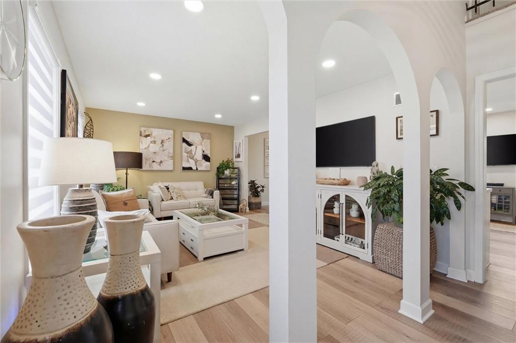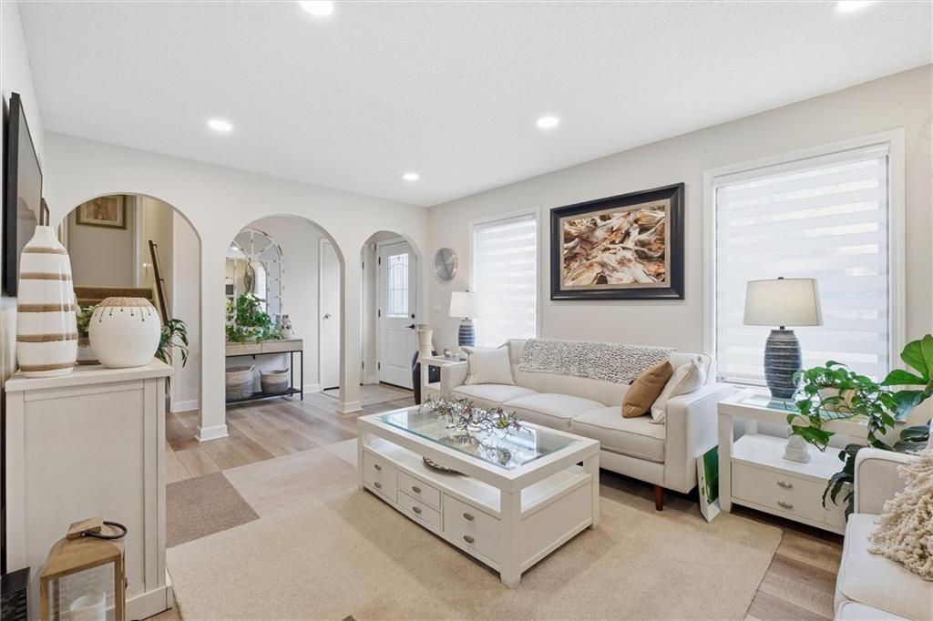 One you won’t want to miss! Tucked away on a quiet cul-de-sac, this beautifully updated home offers the perfect blend of charm, space, and modern upgrades. From the moment you arrive, the curb appeal stands out with elegant black iron front railings leading to an inviting entry and lush landscaping when Spring arrives! Step inside to a stunning living room filled with character, highlighted by architectural arches and warm, welcoming finishes. New luxury vinyl plank flooring flows throughout the main living areas. The fully renovated kitchen is a showstopper, featuring white shaker cabinetry, Corian countertops, stainless steel appliances, and a stylish tile backsplash—perfect for both everyday living and entertaining. Just a few steps up, you’ll find the spacious primary suite complete with a beautifully remodeled, spa-inspired bathroom. Two additional bedrooms and a second updated full bath complete this level. The upper level offers a versatile fourth bedroom with a half bath—ideal as a media room, home office, or private guest space. The lower level provides even more living space with a large family room, cozy fireplace, walkout access, and another updated half bath. Step outside to enjoy the expansive Trex deck overlooking a massive, park-like backyard—offering rare privacy and serene views, where you can even hear horses nearby. Recent upgrades include a brand new roof, Renewal by Andersen windows, fresh interior and exterior paint, updated fixtures, and modern lighting throughout. Homes with this level of finish, space, and setting are hard to find—schedule your showing today!