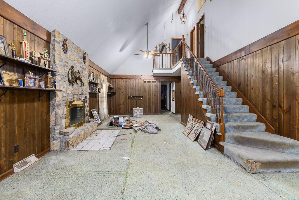 FIXER UPPER ON ACREAGE WITH BIG POTENTIAL FOR THE CITY FARMER OR INVESTOR! This 1.5 story home offers 3 bedrooms and 2 full baths, with a large great room featuring soaring ceilings and a fireplace, a main floor master bedroom, office, formal dining room, and an enclosed patio for extra flex space. Upstairs you’ll find two large bedrooms and a full bath, while the unfinished basement gives you plenty of room for storage or future finish. Outside is where this place really shines: a 3 car detached garage, a 60x48 barn, and a 60x40 barn, with land that’s already fenced for horses or cattle, so your hobby farm or livestock setup is ready to go. Property needs work and is being sold in its present condition and is located in a flood zone, so bring your vision, tools, and creativity to make the most of this unique acreage opportunity.