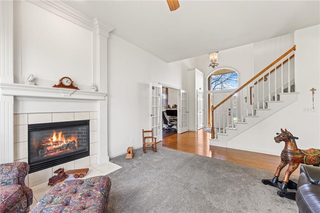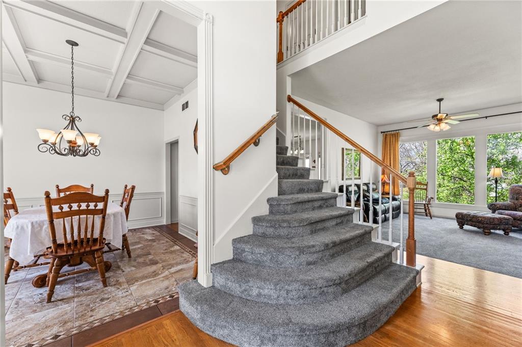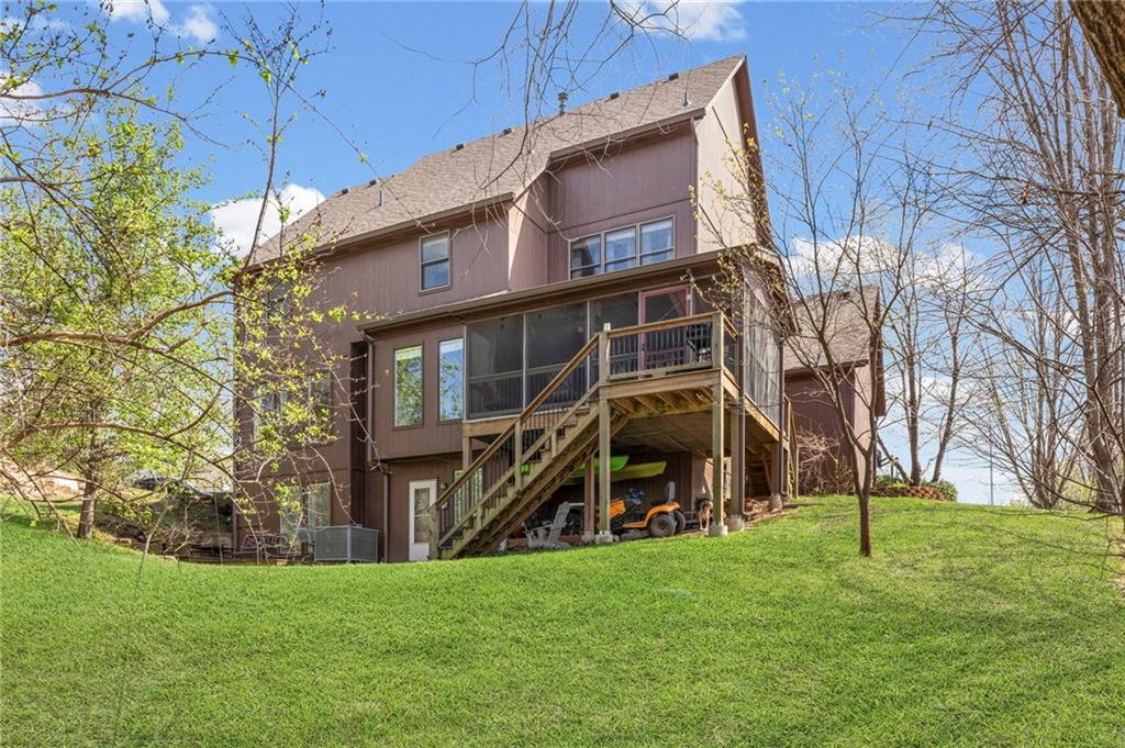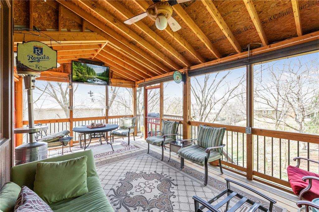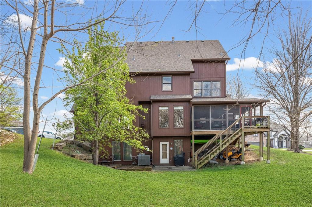 Stunning River Hills Executive Home on a Treed Corner Lot in Parkville Welcome to this beautifully updated home in the highly sought after River Hills subdivision, with a swimming pool and stocked pond, located within the award-winning Park Hill School District. Perfectly positioned on a private, treed corner lot, this home offers space, functionality, and timeless character throughout. Step inside to a dramatic entry and discover a versatile flex room just off the front door, ideal for a home office or sitting room. The formal dining room makes a statement with a bay window, detailed wainscoting, and a distinctive beam ceiling with tile inlay and wood surround. The heart of the home is the expansive great room, featuring soaring ceilings, walls of windows that flood the space with natural light, and a cozy fireplace. The adjoining kitchen and hearth room create the perfect gathering space, offering abundant cabinetry, generous workspace, and seamless flow for everyday living and entertaining. Just off the garage entry, you’ll find a convenient main-level laundry room. The oversized 3-car garage provides exceptional storage potential. One of the standout features is the 20x12 covered, screened-in deck complete with lighting, TV setup, and stairs to the backyard—truly functioning as an additional living space to enjoy year-round. Upstairs you will find 4 spacious bedrooms with the primary featuring a sitting area. The finished walkout lower level offers incredible flexibility with a huge open recreation area, full bath, abundant storage, and a non-conforming 5th bedroom perfect for guests, hobbies, or multi-generational living. Recent updates include new interior paint, new roof, and new garage doors, along with a Rain Bird sprinkler system for easy lawn maintenance. This is a rare opportunity to own a spacious, move-in ready home in one of Parkville’s most desirable neighborhoods offering comfort, style, and room to grow.