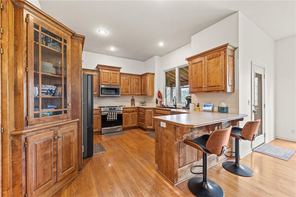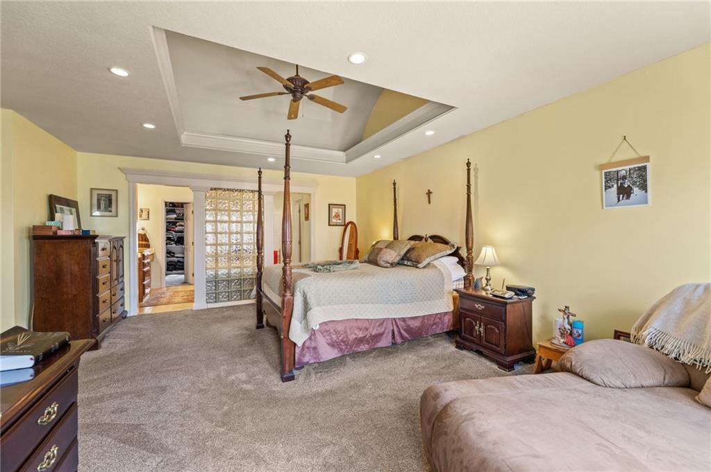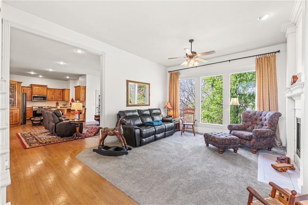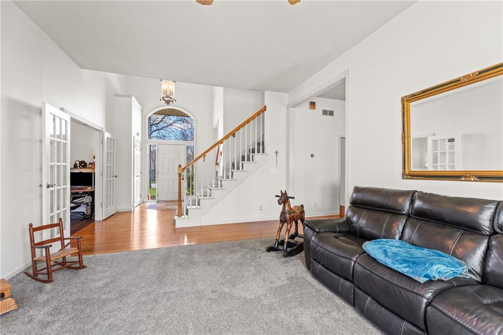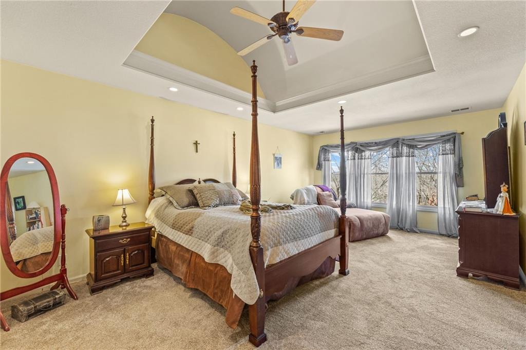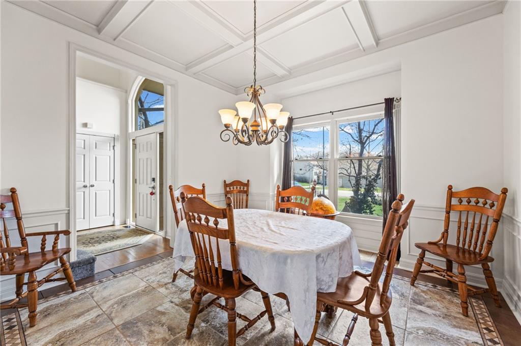 Stunning River Hills Executive Home on a Treed Corner Lot in Parkville Welcome to this beautifully updated home in the highly sought after River Hills subdivision, with a swimming pool and stocked pond, located within the award-winning Park Hill School District. Perfectly positioned on a private, treed corner lot, this home offers space, functionality, and timeless character throughout. Step inside to a dramatic entry and discover a versatile flex room just off the front door, ideal for a home office or sitting room. The formal dining room makes a statement with a bay window, detailed wainscoting, and a distinctive beam ceiling with tile inlay and wood surround. The heart of the home is the expansive great room, featuring soaring ceilings, walls of windows that flood the space with natural light, and a cozy fireplace. The adjoining kitchen and hearth room create the perfect gathering space, offering abundant cabinetry, generous workspace, and seamless flow for everyday living and entertaining. Just off the garage entry, you’ll find a convenient main-level laundry room. The oversized 3-car garage provides exceptional storage potential. One of the standout features is the 20x12 covered, screened-in deck complete with lighting, TV setup, and stairs to the backyard—truly functioning as an additional living space to enjoy year-round. Upstairs you will find 4 spacious bedrooms with the primary featuring a sitting area. The finished walkout lower level offers incredible flexibility with a huge open recreation area, full bath, abundant storage, and a non-conforming 5th bedroom perfect for guests, hobbies, or multi-generational living. Recent updates include new interior paint, new roof, and new garage doors, along with a Rain Bird sprinkler system for easy lawn maintenance. This is a rare opportunity to own a spacious, move-in ready home in one of Parkville’s most desirable neighborhoods offering comfort, style, and room to grow.