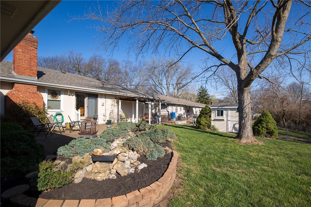 Gorgeous Raytown 4-bedroom, 3 full bath true ranch offering the ease of main-level living with thoughtful accessibility features throughout! Wide hallways and doorways provide wheelchair access to most rooms, plus a convenient ramp from the garage for seamless entry. This well-maintained home features thermal windows throughout, a new roof and window screens (June 2025), and a high-efficiency geothermal heat pump for year-round economical comfort. The water heater is just 2 years old. The primary suite includes twin vanities, a beautifully updated shower (2020) and a relaxing jetted tub. The finished lower level boasts a huge family room, new carpet (2024), a 5th non-conforming bedroom, and a full bath with a bathtub—perfect for guests or additional living space. Step outside to your patio from three different spots of this house. Enjoy the beautifully landscaped backyard complete with a water feature, covered patio, brick patio, and a shed that matches the home. Additional updates include a new driveway and added insulation (2010) Plus Garage floor coating, This home truly has it all —comfort, space, accessibility, and thoughtful updates— Quick easy access to 350 HWY too! This one is ready for you to move right in call to see it today!