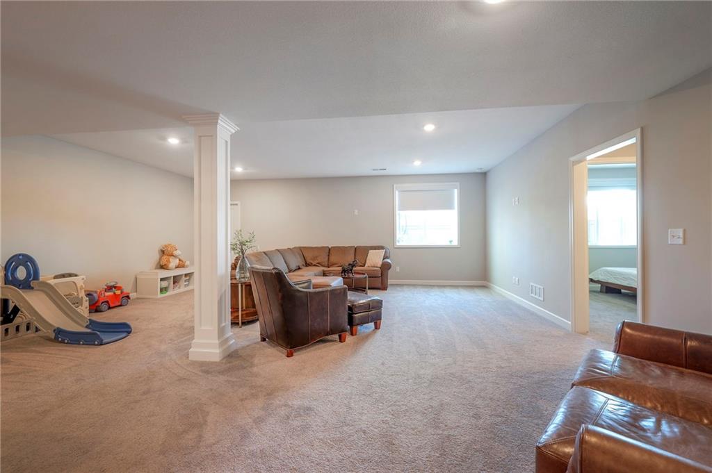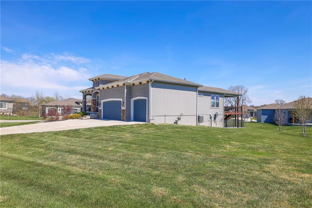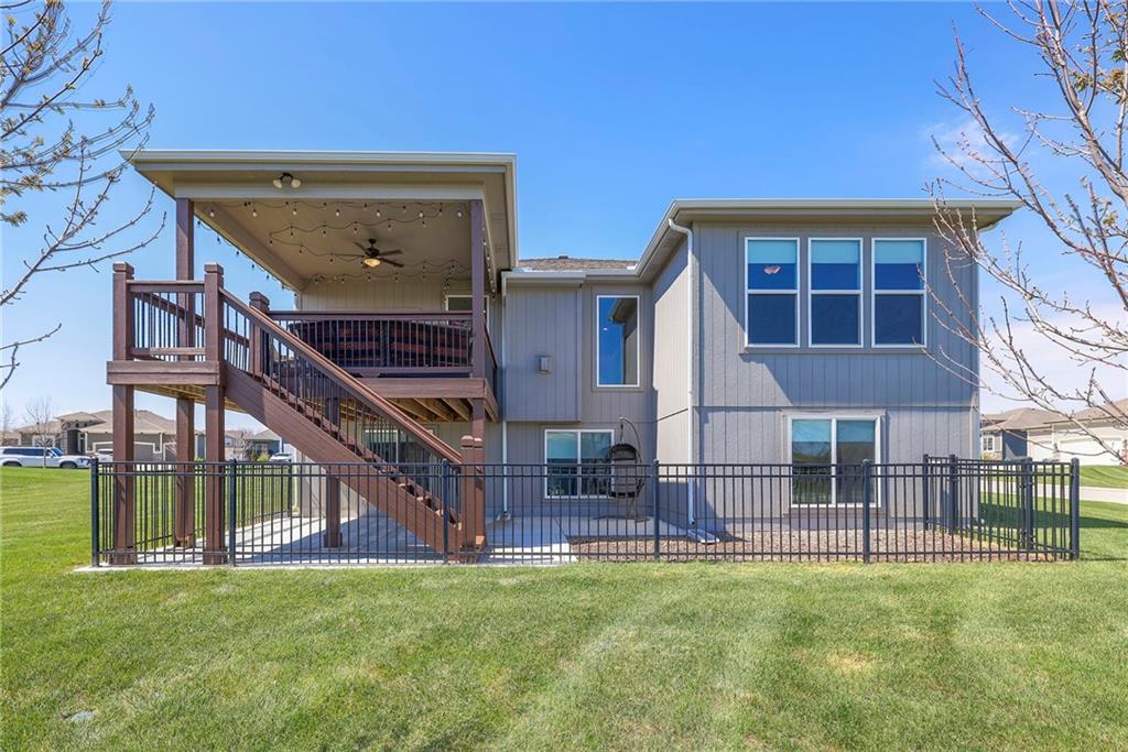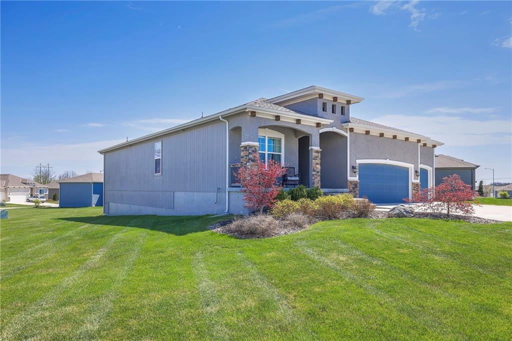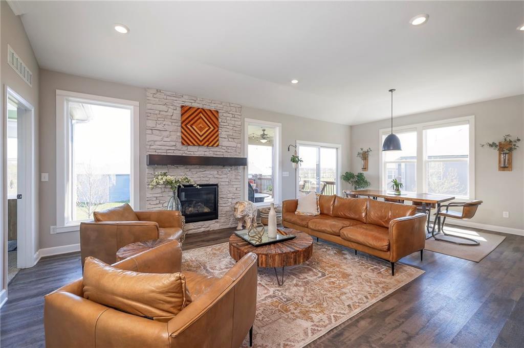 Welcome to effortless, care-free living in this beautifully designed, move-in ready home perfectly situated on a premium corner lot. From the moment you step inside, you'll appreciate the modern open layout, enhanced by engineered hardwood floors and wainscoting entry, upgraded finishes and fresh interior paint. The designer kitchen is truly the heart of the home, featuring custom cabinetry, a large center island, walk-in pantry, gas range and Frigidaire stainless steel appliances-all included. A charming coffee bar adds both function and style, making mornings something to look forward to. The spacious primary suite offers a relaxing retreat with a tray ceiling and large windows that fill the room with natural light, along with a custom tiled shower for a spa-like experience. Additional thoughtful touches include a stylish barn door, ceiling fans, faux wood blinds, upgraded front door, and a wrought iron fence. Cozy up by the gas fireplace with floor to ceiling stacked stone or step outside to enjoy the extra large covered composite covered 13' x 13' deck-perfect for entertaining or unwinding. The finished lower level, daylight basement, provides additional living space, an additional bedroom and full bath with plenty of unfinished storage space to do with what you would like, while the garage offers even extra storage for convenience. This home also includes an active radon mitigation system and a kitchen sink water filtration system for added peace of mind. Enjoy maintenance provided living with lawn care and snow removal for a mandatory $150/month. Community amenities are second to none, featuring a clubhouse, pool, playground, party room, and scenic walking trails. This home truly has it all-style, comfort, and convenience-ready for you to move right in and enjoy!! Why pay for new construction when you can everything you want right here. It's just waiting for you!