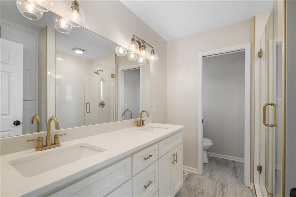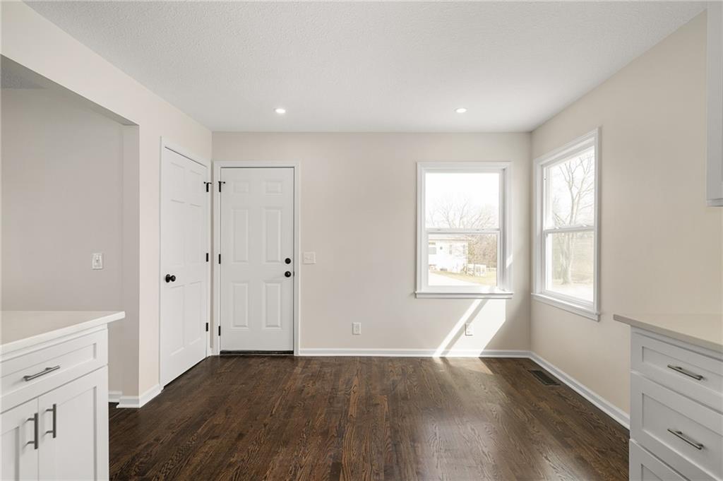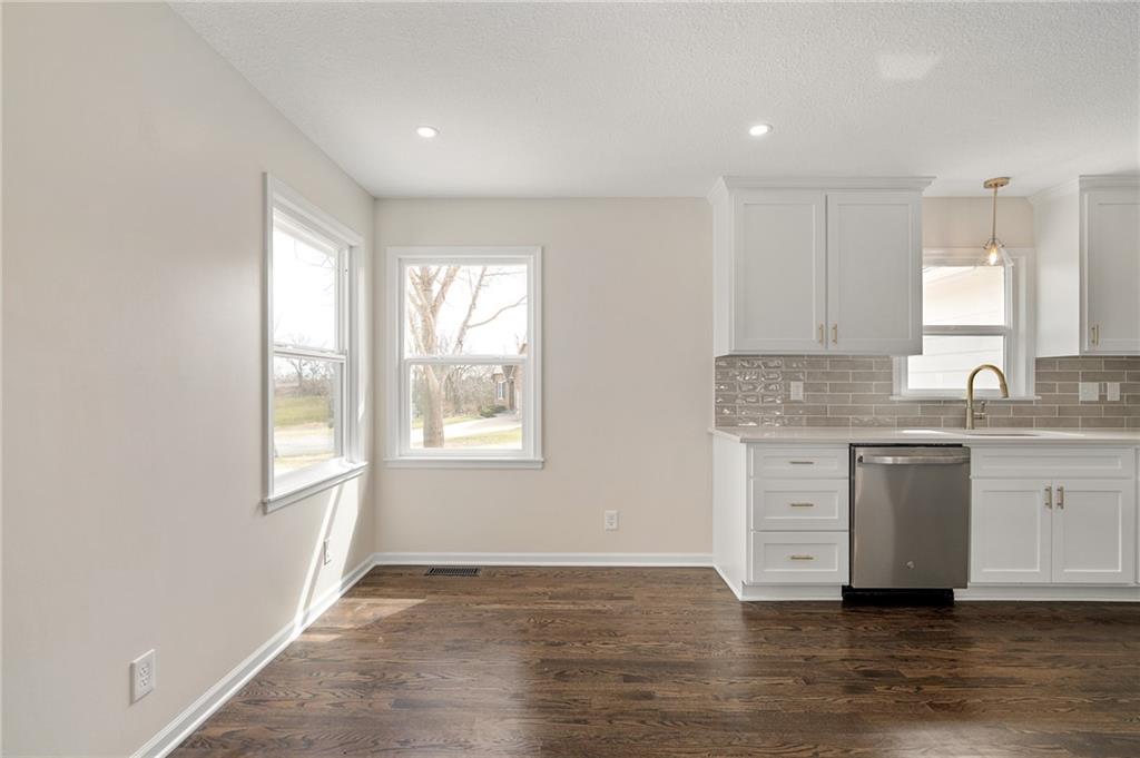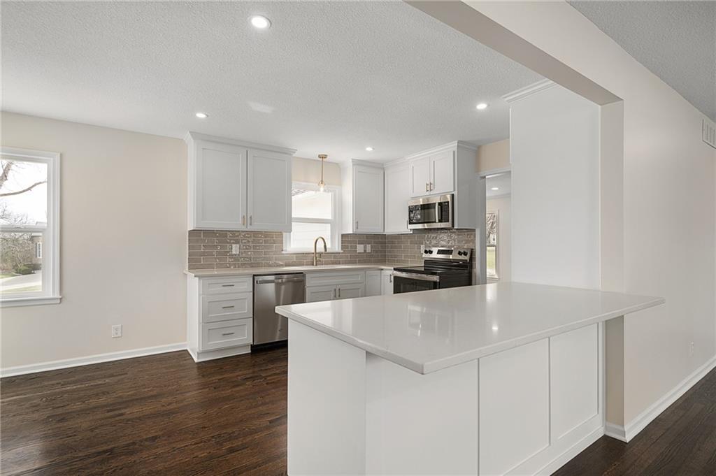 Prepare to be impressed by this fully transformed Olathe home, featuring meticulous, move-in-ready updates both inside and out. The renovation includes a brand-new HVAC system and water heater, new windows, and a freshly painted exterior. The interior boasts a stunning fully renovated kitchen and remodeled bathrooms with modern finishes, including a fully re-imagined, spa-like master bath. You’ll also find two spacious living areas, all-new lighting and hardware, and beautifully refinished hardwood floors throughout. Outside, enjoy a charming brick front porch, a brand-new backyard patio, a storage shed, and fresh landscaping completing the package. This property offers new construction quality in an established neighborhood!