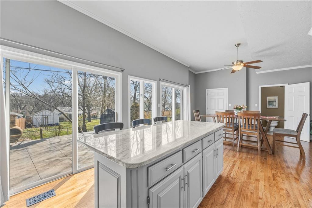 Tucked at the end of a quiet cul-de-sac, this spacious Roeland Park home offers room to live, entertain, and grow. Step inside to discover over 3,200 square feet of functional living space, highlighted by a massive kitchen with stainless steel appliances, gas range, and an oversized island that naturally becomes the center of the home. Multiple living and dining areas provide flexibility for gatherings both large and small. Upstairs, the master suite feels like a private retreat—complete with its own deck, a huge walk-in closet, and a beautifully updated bathroom with double vanities and a walk-in shower. Generously sized secondary bedrooms offer comfort and versatility for any lifestyle. From the oversized garage with tall ceilings to recent updates like newer roof and windows, this home combines space, practicality, and value. All just minutes from shopping, restaurants, and easy highway access. Homes with this much space in this location don’t come around often—schedule your showing today.