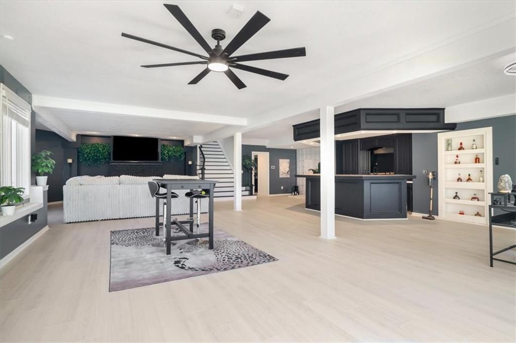 Beautiful 1.5 Story Home with Over 6,000 Sq Ft! Spacious, functional layout with high ceilings. Main level features a large living room, formal dining, office, and an updated eat in kitchen/hearth room with solid surface counters, new lighting, pantry & Laundry Room. Primary suite offers a walk in closet and generous bath. Upstairs include three bedrooms, each with a private bath and ample closets. Finished walk out basement provides a huge family/rec space, full bar, full bath, workout room, craft room, Bonus room hidden by Murphy Door and suspended garage/work shop with tons of storage. The home has many built-ins included in the dining room, office and downstairs living area. The home features many recent updates including, new roof, all new LVP flooring, all poly water lines replaced with PEX/copper, updated shower valves, new fixture stops, fresh interior paint, and new sheetrock in several areas, New door in kitchen/dining room, new laundry room upstairs. Located on one of the largest lots in the subdivision with a circle drive and cul-de-sac! Super convenient to shopping, dining, highways, and in the Park Hill School District.