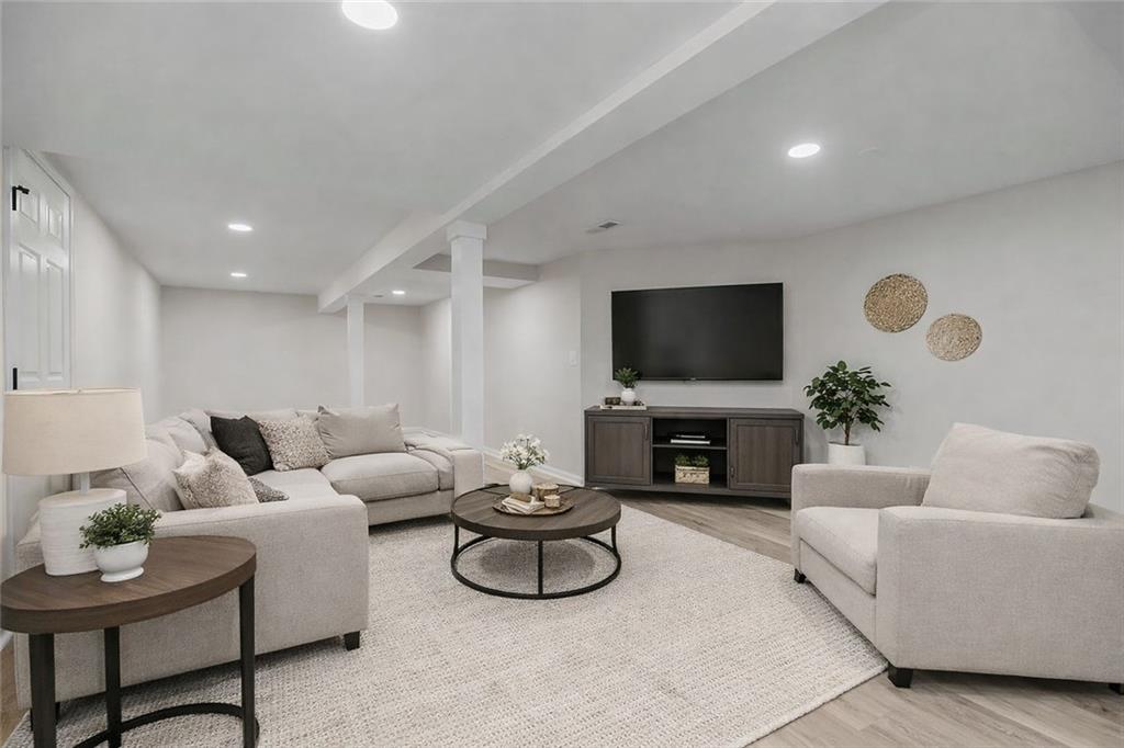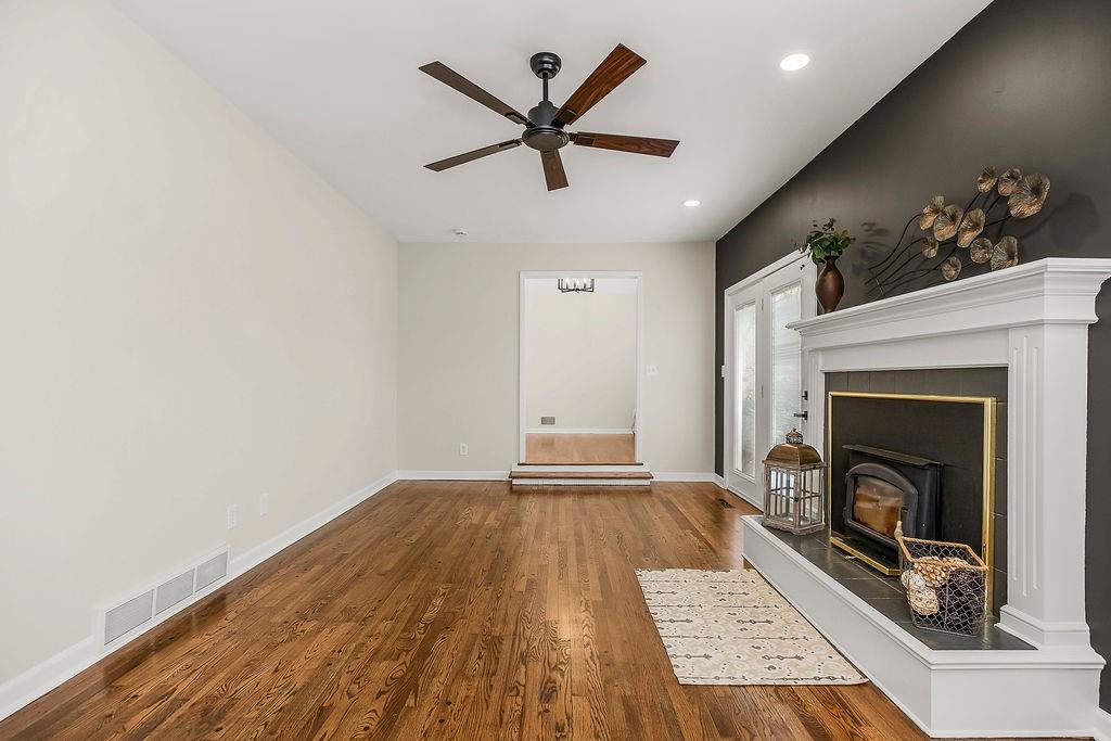 Beautiful remodeled ranch in White Ridge Farms features hardwood floors throughout the main level. Kitchen features quartz countertops, and Stainless Steel Appliances, and a pantry. All new modern light fixtures and bathrooms have been remodeled. Main floor laundry room and a bonus room that could be an office or formal dining room. Downstairs has a family room and a full bath. Plenty of room left for a home gym or storage. Nice patio area out back for summer BBQs!