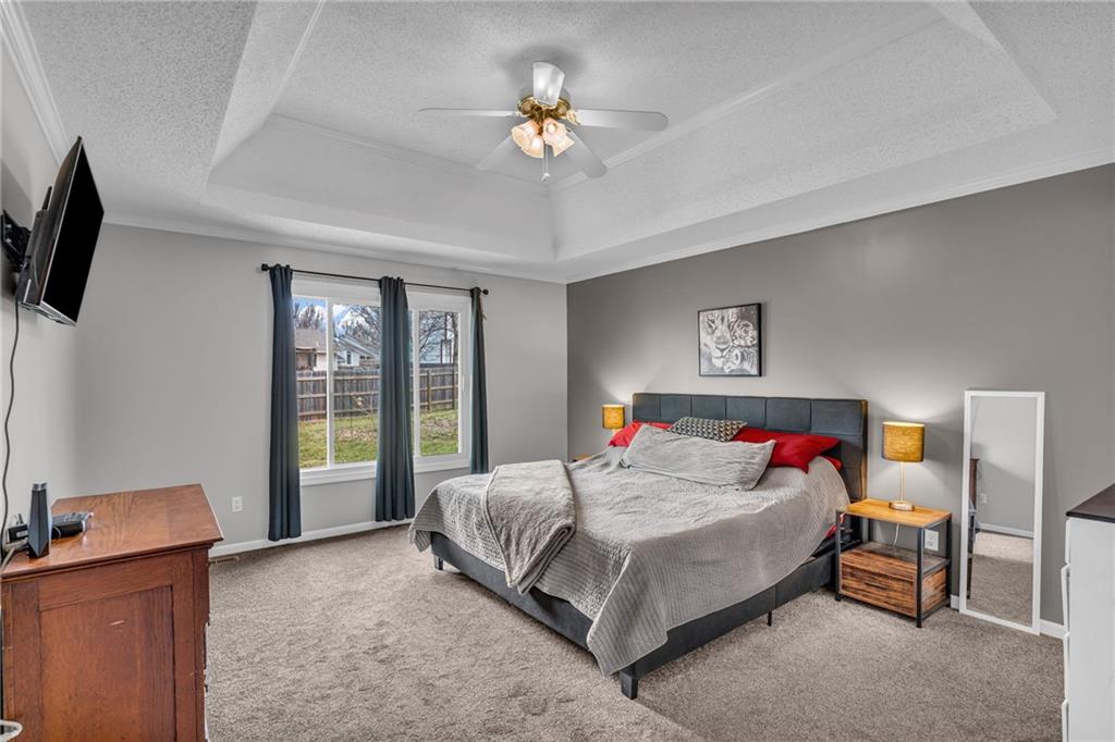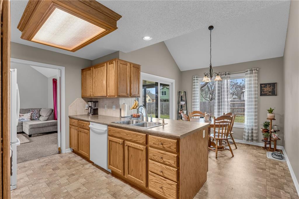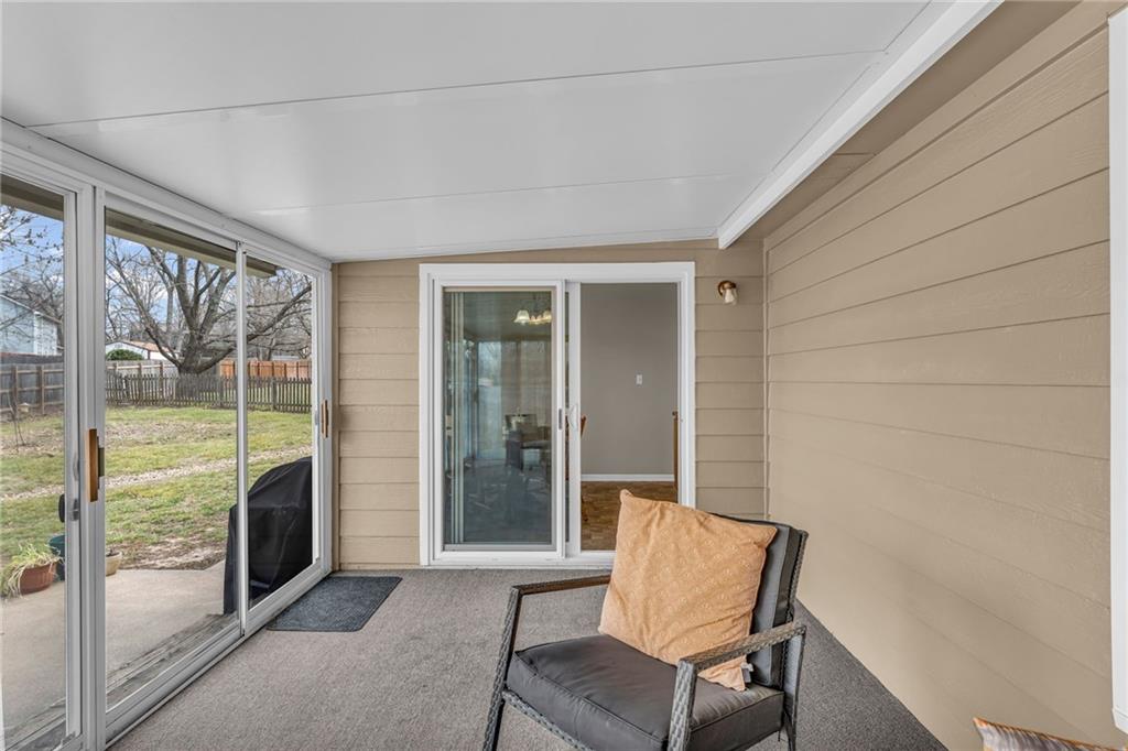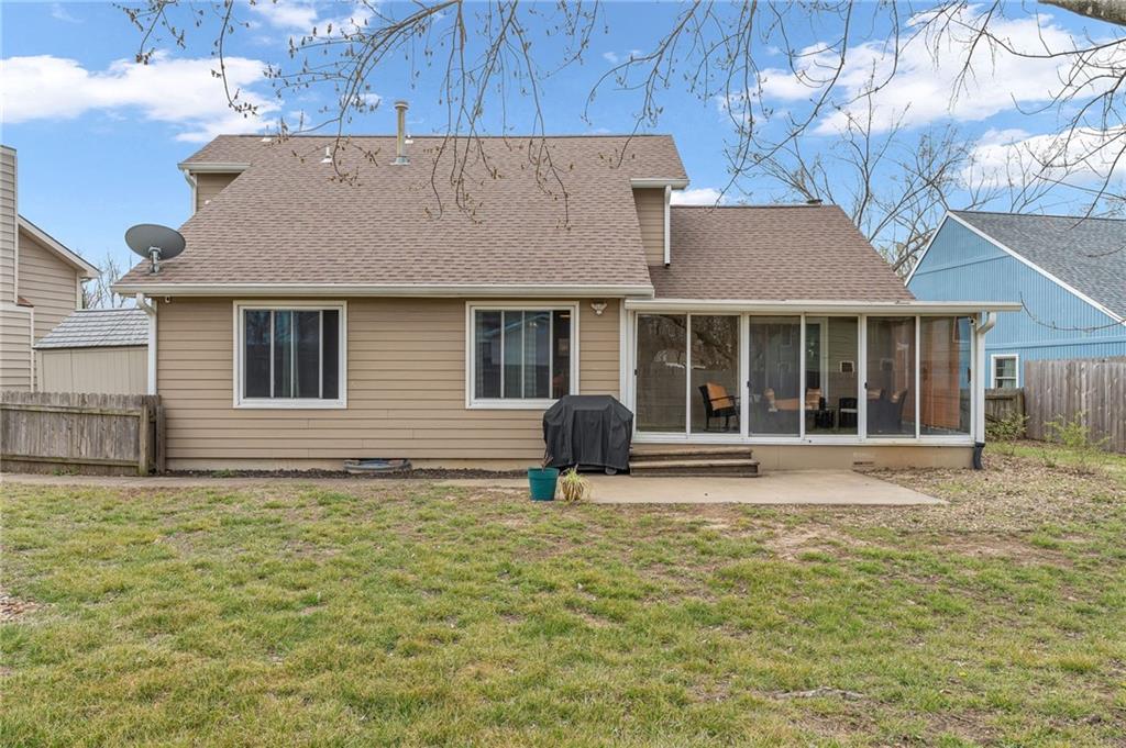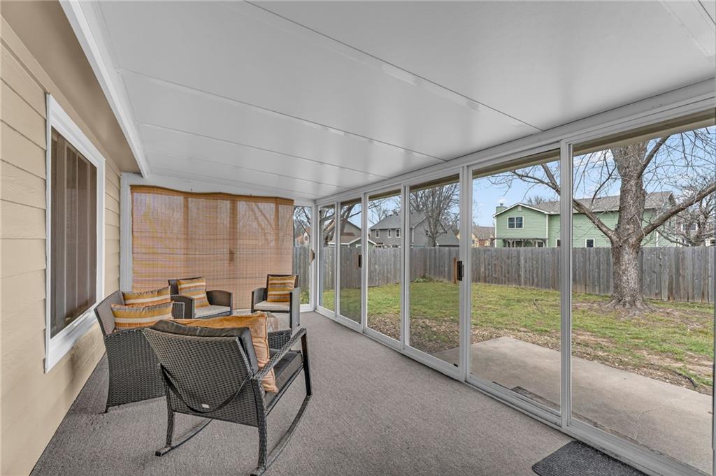 2904 Atchison is a charming 3 BR/2.5 BA home on a circle street close, but not too close, to the conveniences of the S Iowa Street shopping corridor, 59 Hwy and more. Newer carpet and paint of a neutral palette enhances the practical floor plan that features a main level primary bedroom with ensuite bath and walk in closet. Vaulted ceilings and gas fireplace create a cozy but spacious area to gather in the 25'x13' living room. The next owners will inherit newer siding, windows, and AC unit. The bonus is the finished basement with flexible office/rec space, ample storage and built-in shelving. To top it off a very nice enclosed back porch overlooks the fenced backyard. Ready, set, go!