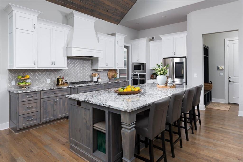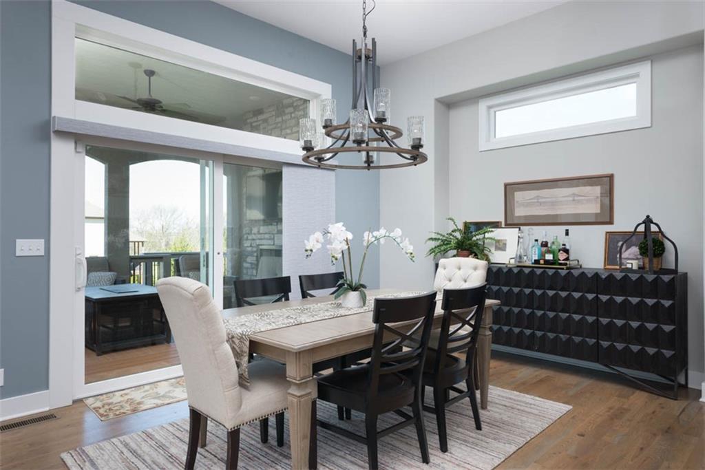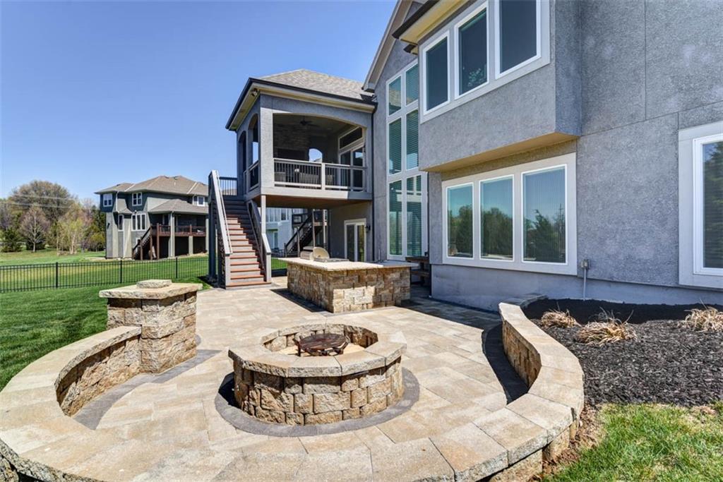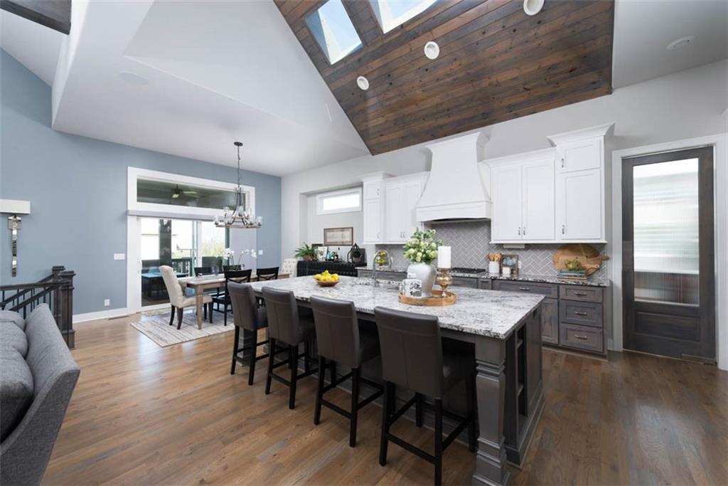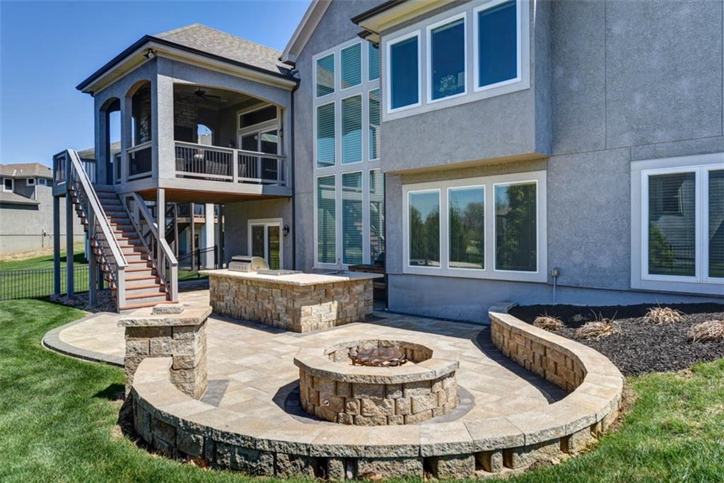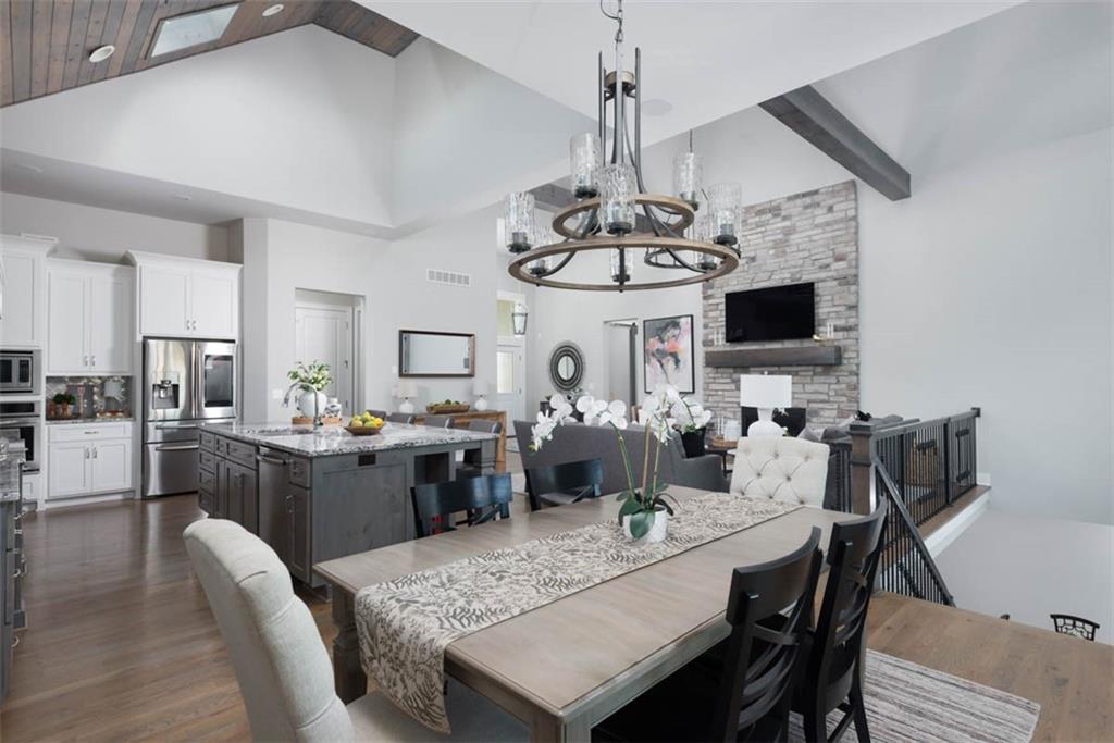 Positioned on a walkout corner lot in the sought-after Colton community, this custom Brookridge II by Don Julian Homes offers a refined take on reverse 1.5-story living with impeccable upgrades throughout. From the moment you step inside, soaring ceilings and expansive 3-floor window wall create a sense of openness, while rich architectural details bring warmth and character to the main living spaces. At the center of the home, the kitchen is both breathtaking and functional, anchored by an oversized island, abundant custom cabinetry, stunning backsplash and countertops, and a walk-in pantry designed for effortless organization. The adjoining dining area flows seamlessly to the covered deck, where a fireplace and elevated views create an inviting extension of the home, ideal for both quiet evenings and hosting with ease. The main-level primary suite is designed as a true retreat, featuring a spa-like bath with an oversized shower and rain head, dual vanities, and a generous walk-in closet that connects directly to the laundry room for added convenience. A secondary bedroom AND dedicated office or flex space complete the main floor, offering versatility without sacrificing comfort. The walkout lower level is equally impressive, with 10-foot ceilings that enhance the sense of space. A large recreation area, media space, and full bar create an ideal setting for entertaining, while additional bedrooms and baths provide privacy for guests. Outdoors, the experience continues with a spacious patio, firepit area, built-in grill, and a wide stretch of green space that feels both open and private, an ideal backdrop for everyday living and memorable gatherings. Garage features epoxy floors and custom cabinets! Every element of this home has been carefully curated to offer a balance of elevated design and effortless livability. A fantastic neighborhood just minutes away from dining, shopping, schools, highways, and entertainment, this stunning custom home has it all!