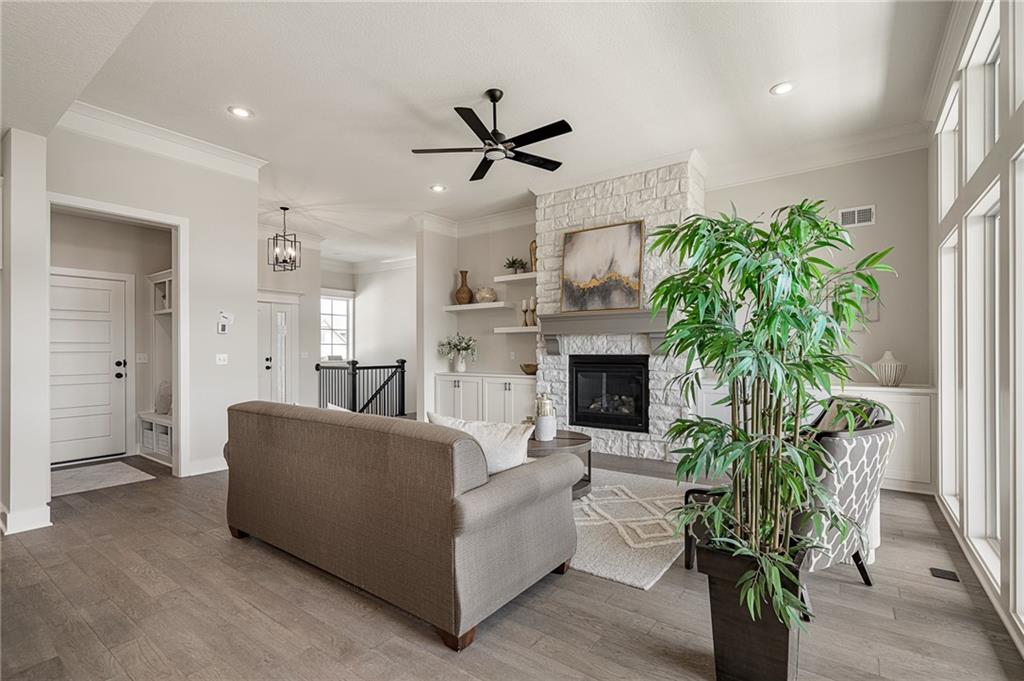 Discover The Payton, a masterfully designed floor plan by Prieb Homes that offers the perfect blend of luxury, comfort, and modern functionality. Located in the highly sought-after Prairie Farms community, this home features 4 spacious bedrooms, 3 full bathrooms, and a 3-car garage across an expansive 3,121 sq. ft. layout. A chef’s dream featuring a large center island, granite countertops, custom cabinetry with soft-close drawers, a walk-in pantry, and stainless steel appliances. A wide-open space centered around a cozy fireplace, flooded with natural light from a wall of windows. A private retreat with vaulted ceilings, double vanities, a tiled walk-in shower, and a massive closet that conveniently connects to the laundry room. Two additional bedrooms and a full bath are located on the main floor, perfect for guests or a home office. The finished lower level boasts a massive rec room that walks out to a patio, plus a 4th bedroom and full bath. Significant unfinished space for storage. Living in Prairie Farms means enjoying top-tier amenities including a swimming pool with a "Signature Barn" cabana, a play area, and miles of walking trails. You are just steps away from the newly renovated Lake Olathe, offering a swim beach, marina, and aqua park. Located in the award-winning Olathe School District (Clearwater Creek Elementary, Oregon Trail Middle, and Olathe West High), this is more than a home—it's a lifestyle. Located in the new phase of Prairie Farms