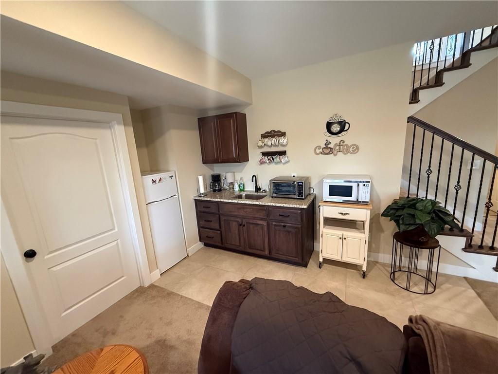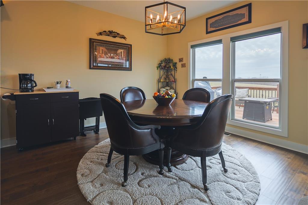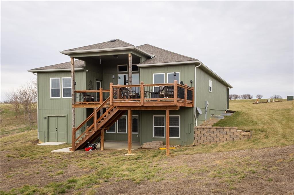 Country living at its finest—without sacrificing convenience! This better-than-new reverse 1 1/2 story sits on 4.6 scenic acres with trees, trails, and unforgettable sunset views from your covered back deck. Step inside to an inviting open floor plan with everything you need on the main level. The kitchen shines with granite countertops, a center island, and plenty of space to host family and friends. The primary suite offers deck access and a large walk-in shower, double sinks, and makeup vanity. Downstairs, the finished walkout basement is perfect for entertaining or relaxing, featuring a family room with wet bar, full bath, bonus room, two additional bedrooms and storage room. Peaceful setting, hard surface roads, and just a short drive to town—this one checks all the boxes!