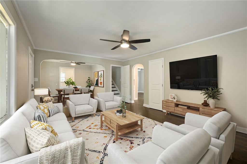 Charming and move-in ready, this inviting home features warm hardwood floors, fresh neutral tones, and elegant arched doorways that create a bright, open feel throughout. The brand-new kitchen shines with sleek countertops, stainless steel appliances, subway tile backsplash, and stylish green cabinetry that adds standout character. Enjoy peace of mind with all-new electrical and plumbing throughout. Comfortable bedrooms offer ample closet space, while the usable basement provides flexible living space for a family room, home office, or gym. Multiple deck areas and an enclosed porch/sunroom make relaxing or entertaining easy. A beautifully updated home with modern systems and great flow—this one is a must-see.