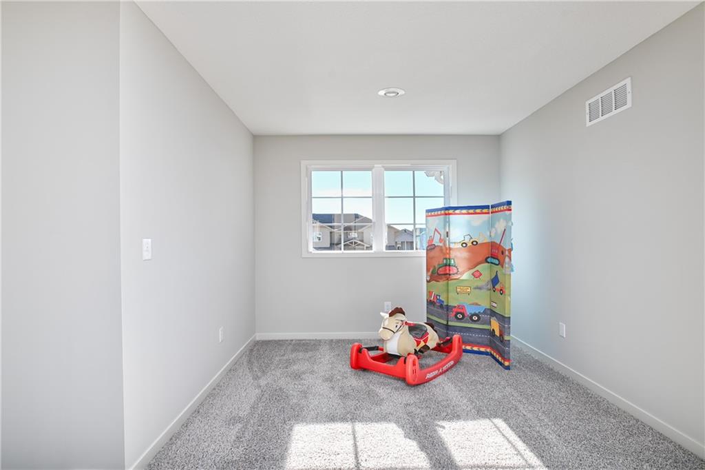 The Levi II offers an exceptional blend of space, style, and functionality with expanded square footage and upgraded finishes throughout. The enlarged kitchen and breakfast area feature custom cabinetry, granite countertops, a large center island with seating, tile backsplash, upgraded faucet, walk-in pantry, and stainless steel appliances—perfect for everyday living and entertaining. Hardwood floors extend through the entry, kitchen, breakfast area, and mud room. A versatile main-level flex room with closet and wood-paneled ceiling provides ideal space for a home office or fifth bedroom. The mud room includes a boot bench and entry closet, while the great room is anchored by a stone direct-vent fireplace with wood mantle. The primary suite is a true retreat, offering a separate sitting area, vaulted ceiling, expanded walk-in closet, and spa-like bath with granite countertops, soaking tub, and walk-in tile shower. All bedrooms feature vaulted ceilings. Upstairs highlights include a loft area with built-in bookshelves, a hallway window for added natural light, and a spacious laundry room with custom cabinetry and granite countertop. Tile flooring is featured in all bathrooms and the laundry room, with Berber carpet on the stairs. Enjoy outdoor living on the covered patio with a full sprinkler system. Located in Prairie Farms, residents enjoy neighborhood amenities including walking trails, pool, playground, and convenient walking distance to Lake Olathe.