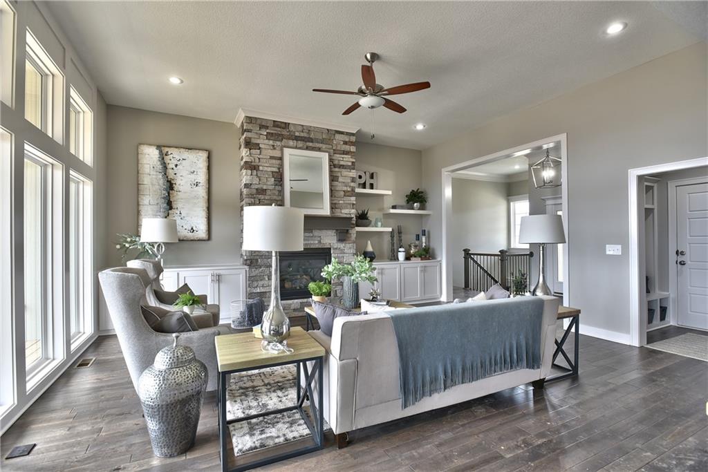 Prieb's all-new Payton Rev 1.5 plan is a stunning home located in a tranquil setting, backing to greenspace. This beautiful home features a spacious great room with a floor-to-ceiling stone fireplace and hardwood floors. The light and bright kitchen boasts a large island with an apron-front sink, recirculating stove hood, built-in microwave, soft-close drawers and doors, and painted kitchen cabinets. The main level of this home features three bedrooms, while the finished walkout lower level has an additional bedroom, a family room, and a third full bath. The walk-up wet bar is a great addition, perfect for entertaining guests or enjoying a night in with family. The covered 17x8 deck provides the perfect spot to enjoy the beautiful views of the treed greenspace, while the large walk-out lot provides easy access to the outdoors. This home is a great option for anyone looking for a functional and beautifully designed living space in a serene setting.