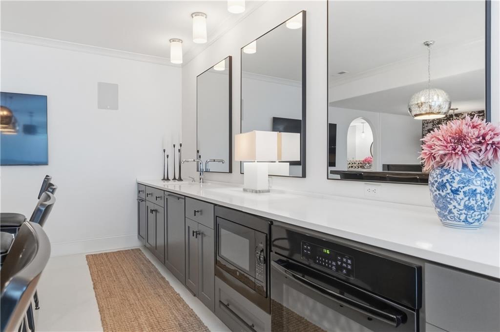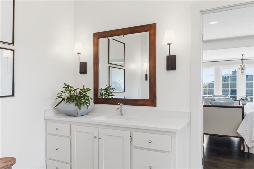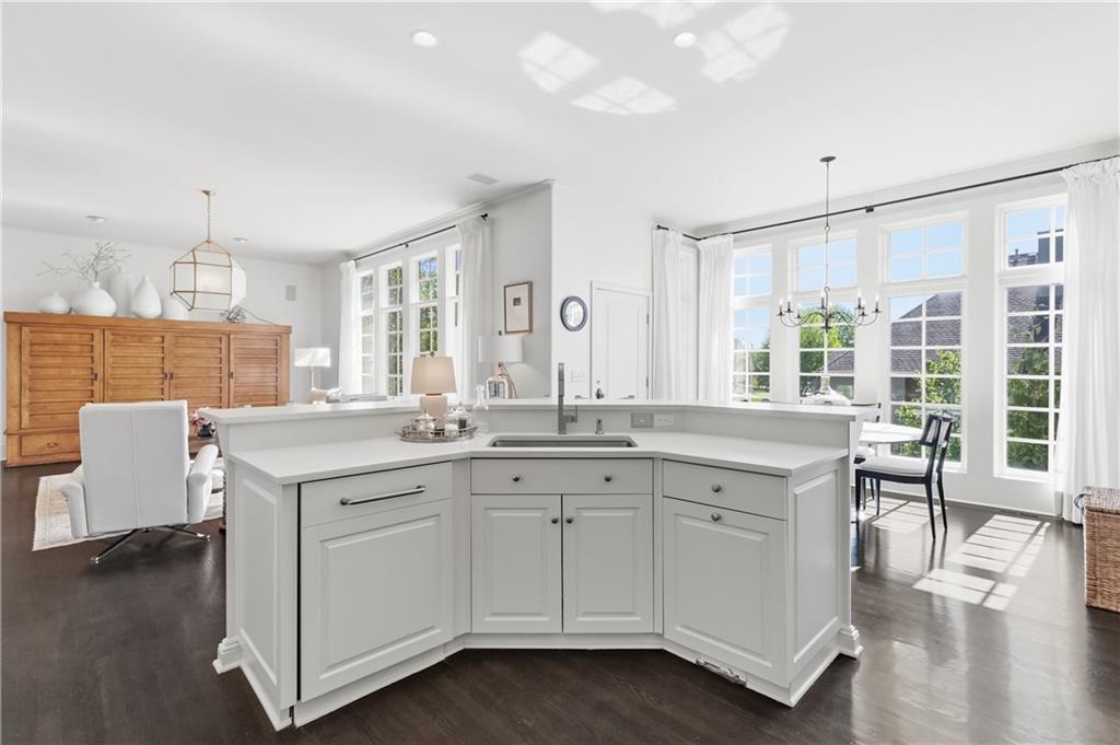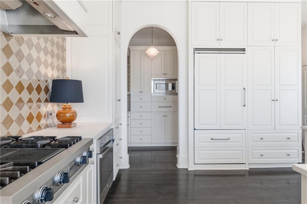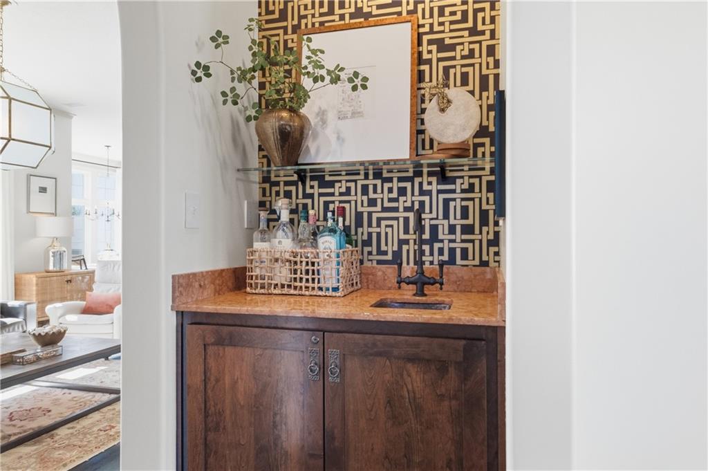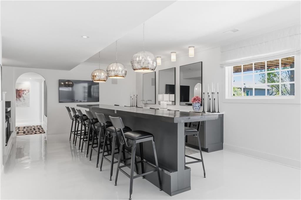 Tucked away on a quiet cul-de-sac in one of Leawood's most sought-after neighborhoods, this 5-bed, 5.5-bath two-story will stop people mid-scroll—and then have them scheduling a showing five minutes later. From the moment you step inside, it’s clear this isn’t just a house—it’s a fully curated experience. Every inch is magazine-worthy, layered with thoughtful design and swoon-worthy details. Arched doorways (very much having their moment) create a soft, architectural rhythm throughout the home, while rich hardwood floors flow from both the main level to upstairs. The heart of the home is as functional as it is beautiful. A stunning kitchen with Viking appliances is ready for everything from weeknight dinners to full-scale entertaining. Just beyond, the hearth room features a custom-built antique-style tansu-style armoire—an unexpected focal point that elevates the space. Even the everyday spaces shine here. The laundry room, color-washed and wrapped in orchid pink wallpaper—might just be the happiest room you’ve ever folded clothes in. Upstairs, the spacious primary suite feels like a private retreat, complete with a charming sitting area. The ensuite bath offers a quiet seating nook and a dedicated makeup vanity designed with ease. The lower level is a true entertainer’s dream. Polished concrete floors set a modern tone, and a statement bar and built-in booth create the vibe of your favorite lounge. Just steps away, your private movie theater awaits for unforgettable nights in. A fifth bedroom and full bath provide the perfect setup for guests who may never want to leave. A beautiful deck just off the kitchen invites you to unwind, dine, and enjoy the outdoors with ease. Finished with designer lighting from Visual Comfort and a level of detail rarely seen, this home is more than move-in ready—it’s unforgettable. Be prepared: once you’re here, you’ll be looking for any excuse to entertain. Basement sf provided by seller - buyer's agent to confirm.