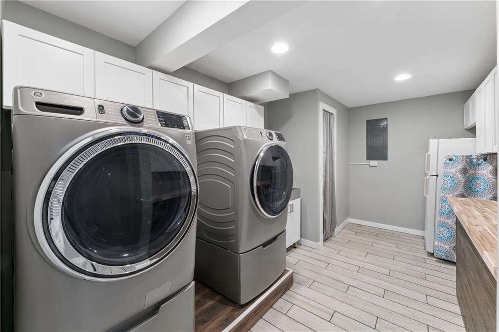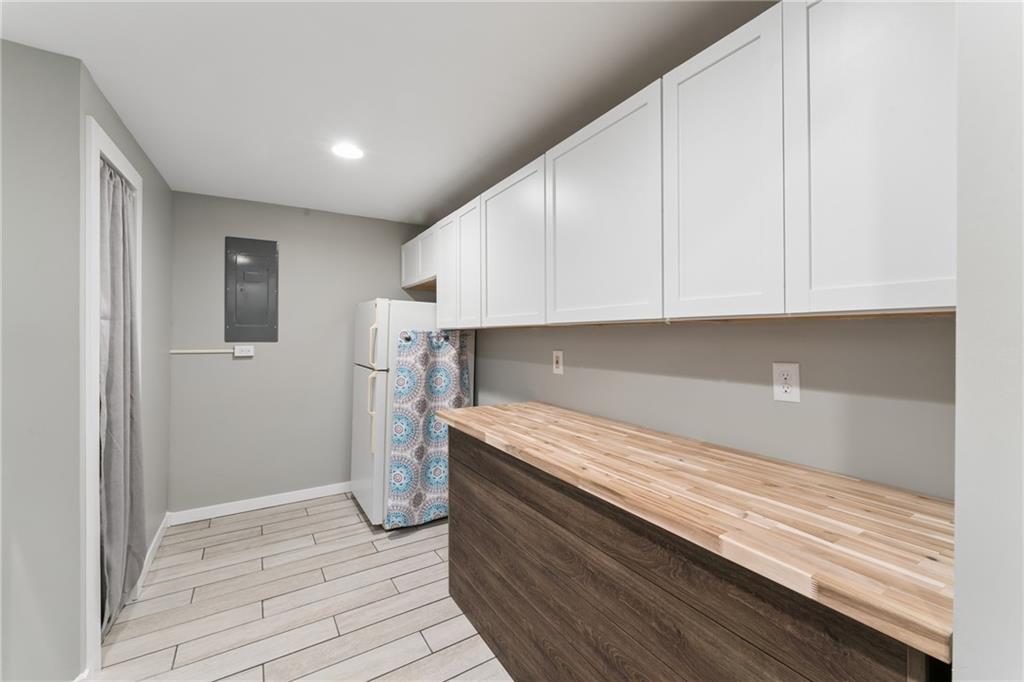 Stunning, updated multi-level home offering space, style, and incredible versatility! This beautifully refreshed property features new flooring in all bedrooms, a stylish kitchen with updated backsplash, and thoughtfully renovated spaces throughout. The redesigned laundry room is a true standout—complete with front-loading washer and dryer, folding station, utility sink, and even a beverage refrigerator for added convenience. The finished basement expands your living options with a dedicated workshop area and a fully remodeled space featuring luxury vinyl tile and fresh paint—perfect as a second family room, recreation area, or a conforming fifth bedroom with egress window and closet. Enjoy multiple living areas, including a spacious family room with a cozy fireplace and a bright living room highlighted by a charming bay type window. Outdoor living is just as impressive with both a large rear deck and an additional front deck—ideal for relaxing or entertaining. Nestled in a highly desirable, tree-lined neighborhood, this home offers generous spaces and flexible living options to fit a variety of lifestyles. A rare find that truly has it all!