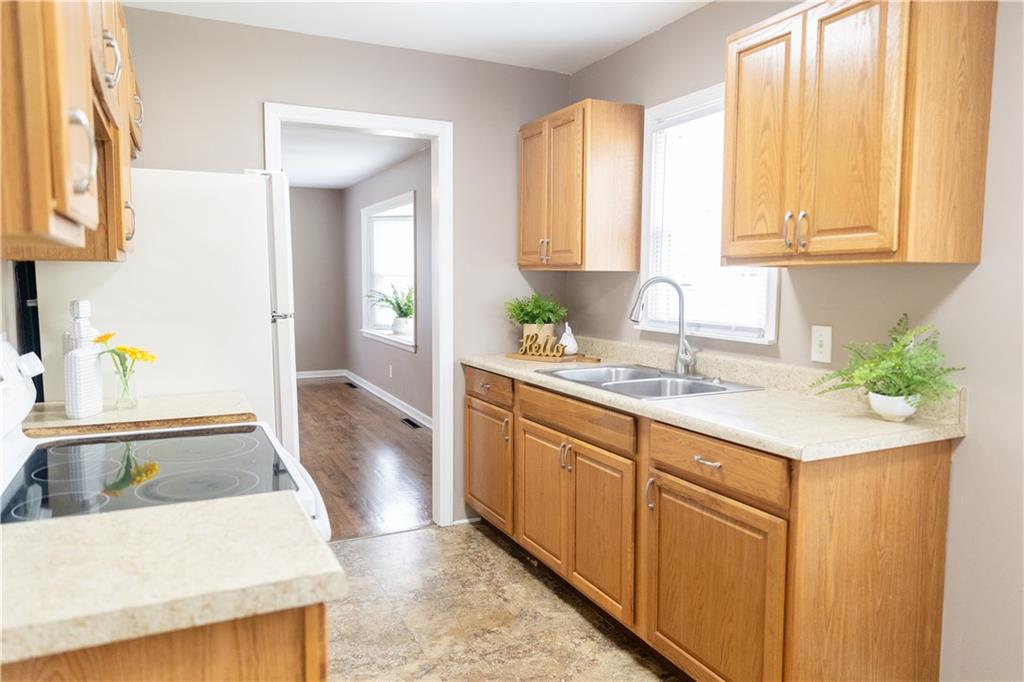 This quaint MOVE IN ready ranch home has had all the BIG ticket items taken care of already: new Lennox HVAC, new water heater, new window blinds, all new light fixtures, roof 7 years old, upgraded electrical panel, upgraded plumbing, foundation work completed. Freshly painted interior (ceiling, walls, trim) gives a fresh look and all the hardwood floors have been refinished! 2 beds/1 full bath on main level, eat-in kitchen (was gutted and redone in 2015), and living room with a large bay window in front. A non-conforming partially finished 3rd bedroom is in the basement along with laundry and daylight windows. Basement floors and walls painted for a clean look. Sit on the concrete patio to enjoy the fenced backyard under the shade of mature trees just in time for Summer!