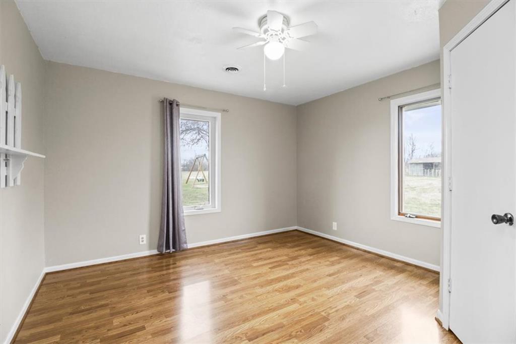 Set on 24 beautiful acres, with private drive and gated entry, this property is ready for your livestock and your lifestyle. This gorgeous home is out of city, unincorporated Oak Grove offering low property taxes under $3300/year. Fully fenced and cross-fenced, the land is thoughtfully divided into five separate pastures making it perfect for rotating cattle or horses. A newer 30x40 shop features a concrete floor, 200-amp service, and an exhaust fan, while a second barn offers wood flooring, electricity, and a loft for additional storage. You’ll also find two loafing sheds with stalls, along with two stocked ponds ready for your enjoyment! This home is positioned perfectly in the center of the acreage, offering 4 bedrooms, 2 bathrooms, along with an office/mudroom with peaceful views and stunning sunsets. You'll love the beautiful flooring throughout with a unique sunken living room surrounded by newly updated handrails with rod irons. All rooms are spacious with walk-in closets in every bedroom. Major updates have already been taken care of, including a new deck and extended patio, fully renovated bathrooms, new light fixtures, updated kitchen with new countertops, backsplash, sink, faucet, painted cabinetry, and double ovens. Additional improvements include fresh interior and exterior paint, eight newer windows, updated flooring, and upgraded trim with 6” baseboards in most of the home. New septic system less than a year old, the roof, furnace, and A/C are all 8 years old. This is a rare opportunity to own a turn-key acreage home out of city, off black top with the space, setup, and updates already in place.