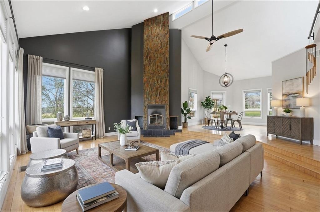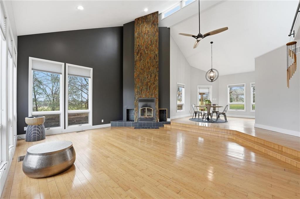 Private Retreat; Endless Possibilities! Tucked away on just over 6 acres, this beautifully updated property offers the perfect blend of space, comfort, and peaceful views—including your very own pond. Step inside to find gorgeous wood floors throughout the main level, complemented by all new interior paint and updated light fixtures that create a fresh, modern feel. The stunning great room is truly the heart of the home, featuring a vaulted ceiling, cozy fireplace, and an abundance of windows that flood the space with natural light while showcasing serene views of the property. A full wall of custom built-ins with a rolling ladder creates the perfect opportunity for a dream home library or beautifully styled display space. The kitchen shines with brand new stainless steel appliances! Main-level primary suite is a true retreat, featuring a newly added walk-in closet and a completely remodeled spa-like bathroom with heated tile floors, a huge walk-in shower, and a relaxing soaker tub. Upstairs and throughout the bedrooms, you’ll find all new carpet, while the main level also offers a dedicated office—perfect for working from home or creating a quiet flex space. The walk-out basement expands your living options even further, with a partially finished 4th bedroom and the potential to add a 5th bedroom, home gym, or additional living area. Major updates include two new hot water heaters and a newer furnace, giving you peace of mind. Outside, the owners have invested significant time clearing and improving the land, opening up the property to fully enjoy the scenic surroundings and pond views. The dirt will be removed/leveled before closing (see supplements). If you’ve been looking for space, updates, and the chance to enjoy peaceful acreage living…this is it.