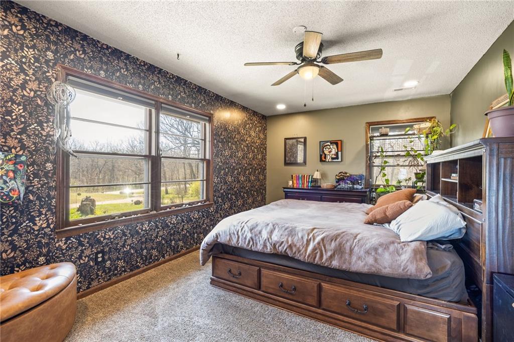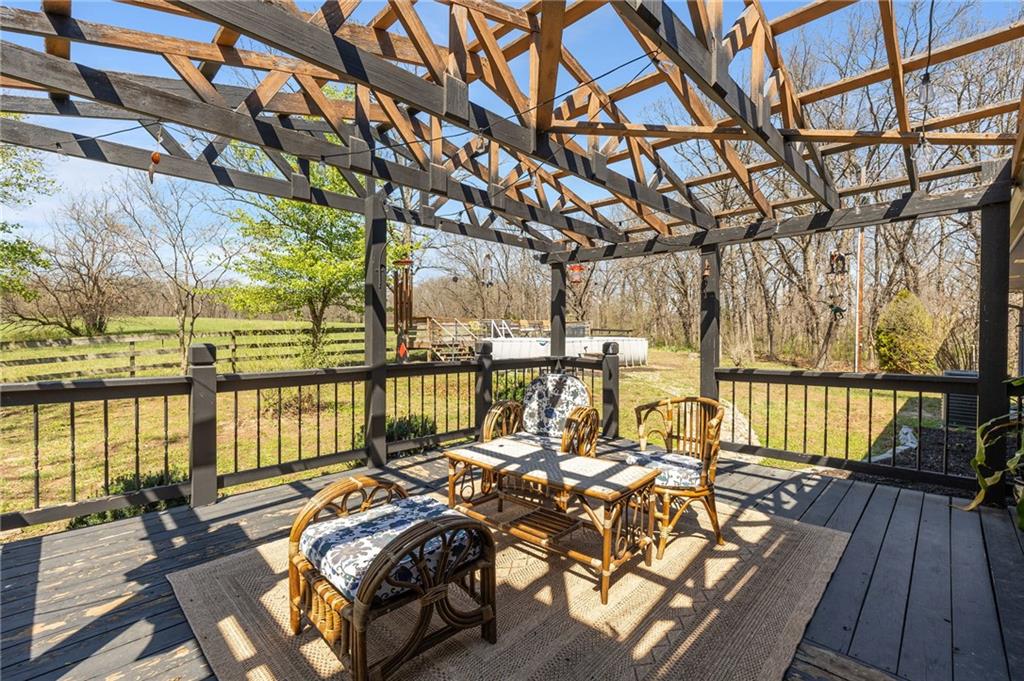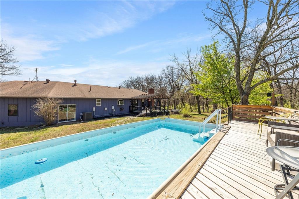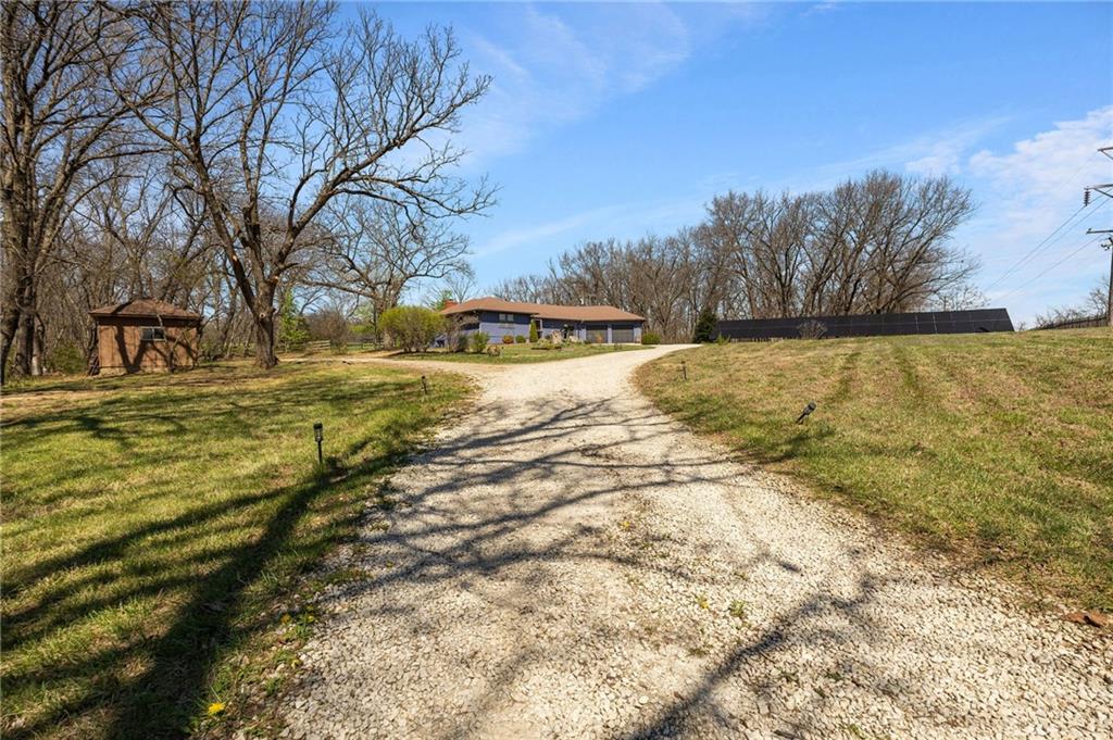 Solar panels, hot tub, pool, space, three wooded acres, and upgrades—this property brings it all. With $80,000 in paid-off solar panels, a hot tub, an above-ground pool with a custom-built deck, and an incredible setting surrounded by mature trees, open fields, and beautifully maintained landscaping, this is the kind of property that makes an impression from the very start. Located just 7 miles north of Warrensburg, it offers the perfect blend of convenience and peaceful country escape. Inside, the home is spacious, updated, and built for both everyday living and entertaining, featuring 4 large bedrooms, an upstairs and downstairs master, 3 full bathrooms, brand-new top-of-the-line appliances, a media room with a giant projector screen, and a full bar downstairs. The oversized garage has room for 2 vehicles plus tools, freezers, and extra storage, and there is an additional shed on the property as well. The paid-off solar system adds tremendous long-term value, with energy savings that can make utility bills nearly nonexistent during sunny months and dramatically lower in the winter. Whether you are looking for a private retreat, a home built for hosting, or a beautifully updated property with standout amenities close to town and Whiteman Air Force Base, this one checks every box.