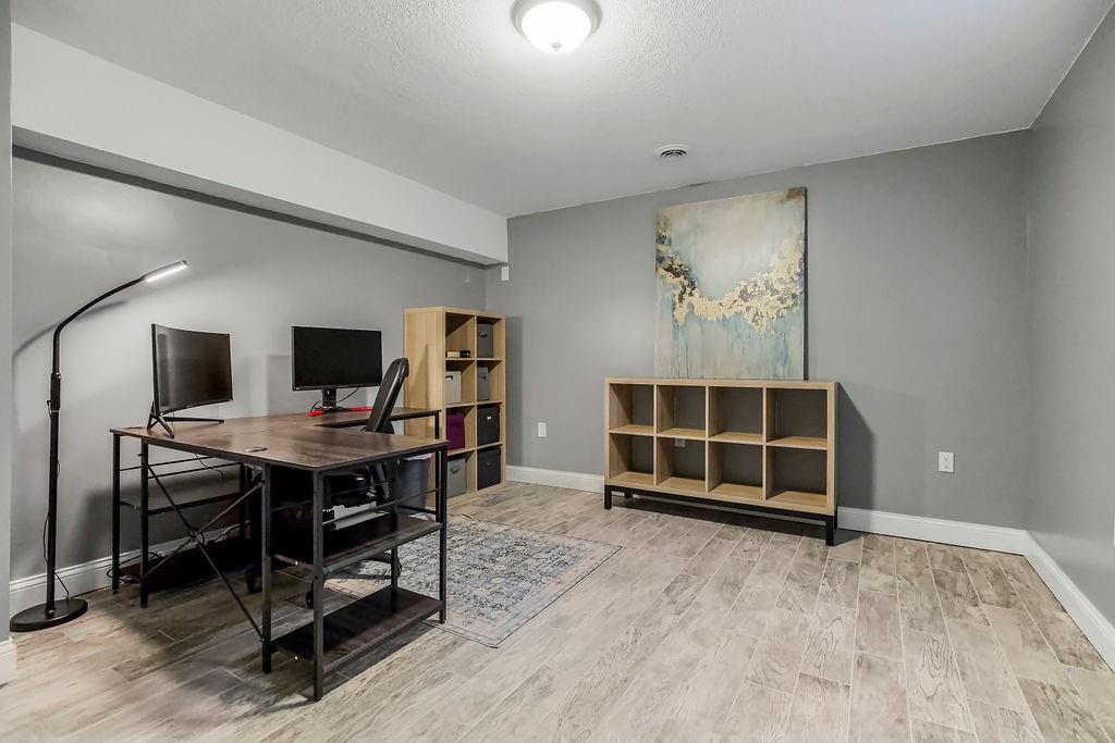 With over $50,000 in updates over the past several years and priced $15,000 UNDER a November 2025 appraisal value, this exquisitely renovated true ranch home set on 17.35 acres is a DREAM! Located within the Basehor-Linwood School District, this property is a nature lover's paradise, featuring abundant wildlife, two stocked ponds, scenic trails, and a creek with a bridge. The main level showcases a formal dining room, a spacious living room with beamed ceilings and a wood-burning fireplace, an updated kitchen with quartz countertops, new backsplash, updated flooring, new stainless-steel appliances, a pantry, and a cozy breakfast nook. Adjacent to the kitchen is the master suite with a walk-in closet, dual vanities, shower, and laundry room. For added privacy, there are two additional bedrooms and a full updated bath on the opposite side of the house. The lower level includes a family room, 4th bedroom, and half bath, with access to the garage/workshop, making it ideal for potential separate living quarters. The lower tandem garage workshop is equipped with AC and can accommodate 3 cars (additional 2-car garage on main level), with ample storage space available. The fenced backyard features a generously sized covered patio perfect for entertaining, relaxing in the hot tub, and enjoying the company of hummingbirds. With custom finishes throughout and recent updates that include a freshly painted interior, scraped ceilings, flooring, kitchen renovations, fixtures, and electrical/lighting, this home offers an absolutely tranquil setting just outside the city limits, where you can revel in the soothing sounds of nature.