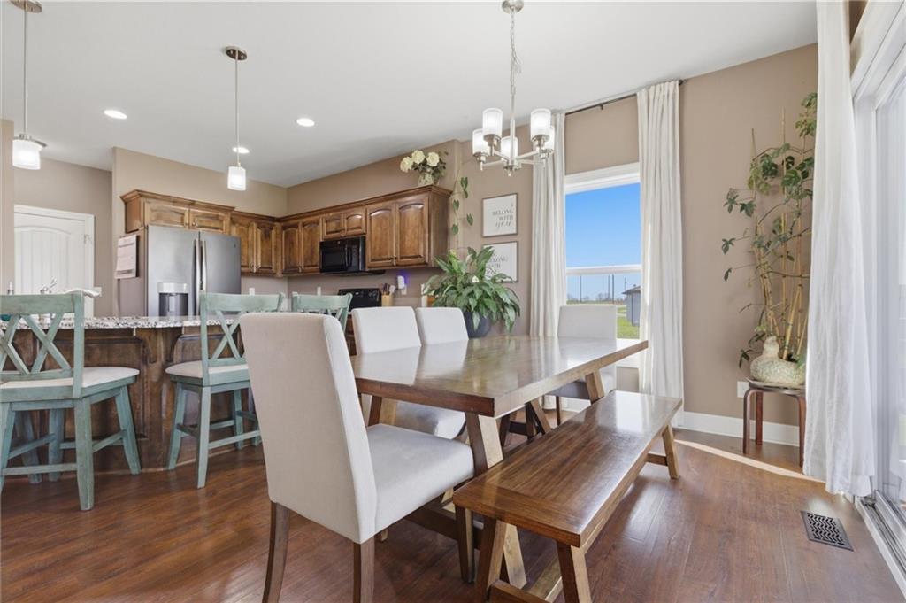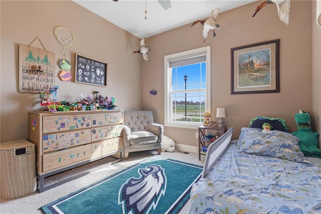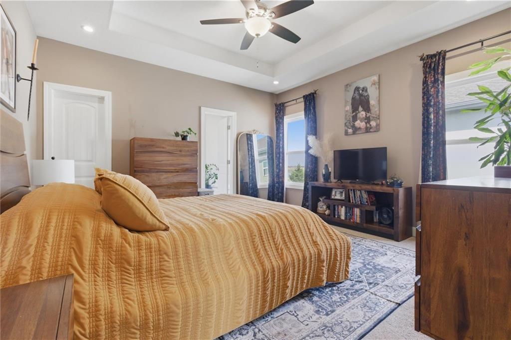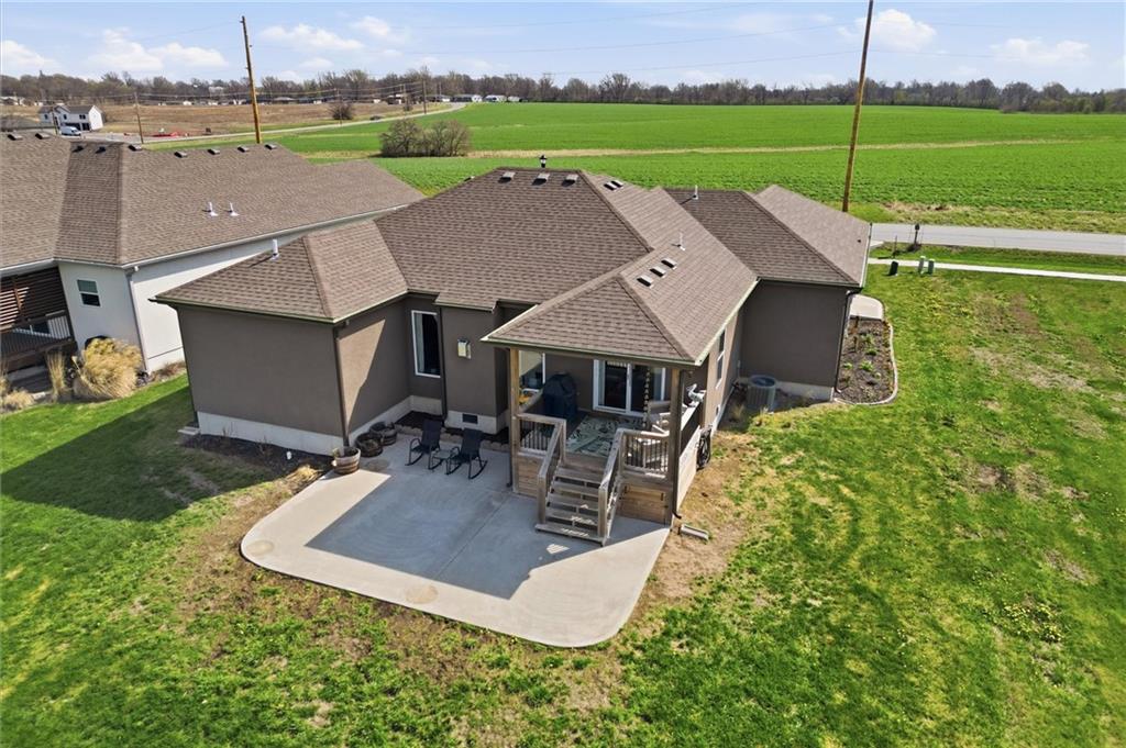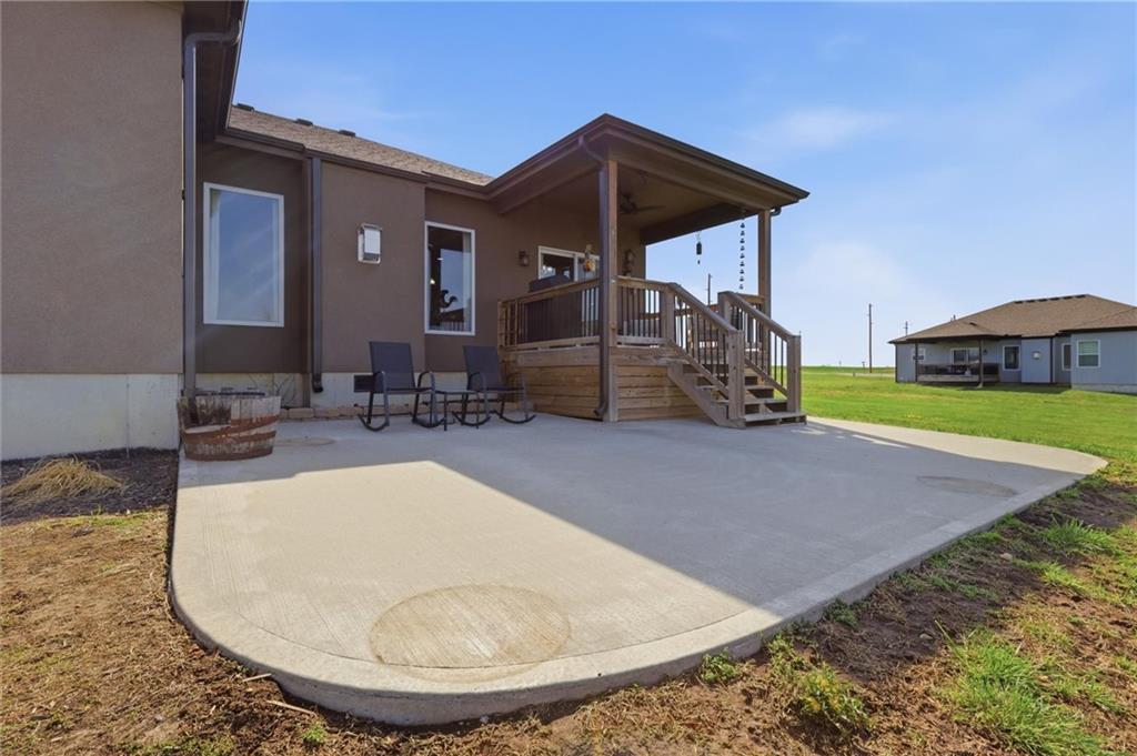 Enjoy golf course living in this well-maintained ranch home backing to the 18th hole at Hidden Valley Golf Course in Lawson! Built in 2018, this 3-bedroom, 2-bathroom home offers true main-level living with an open and airy layout with tall ceilings in the living room. The spacious primary bedroom features a private bathroom and walk-in closet. Walk out to the back deck that steps down to the large patio—perfect for relaxing or entertaining while taking in the beautiful views of the golf course. Deep backyard and very well cared for landscaping beds. Concrete storm/safe room in garage. Located in the desirable Lawson School District with quick access to Hwy 69, this home offers a great blend of comfort, convenience, and scenery.