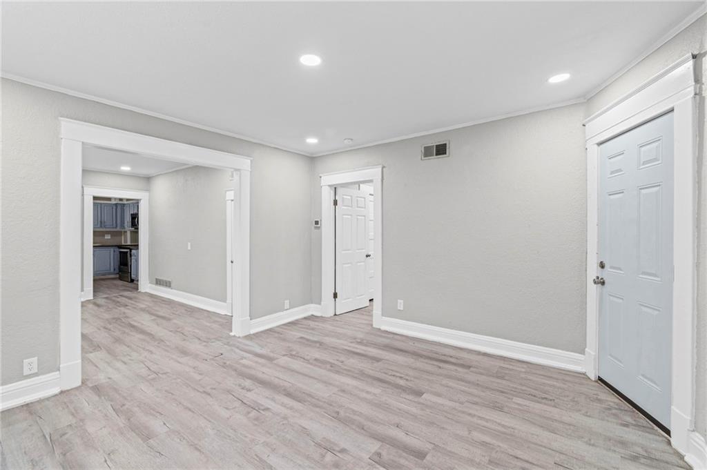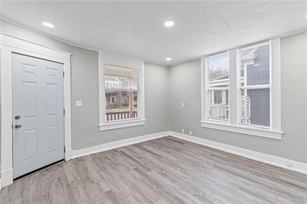 Step into the character and warmth of this 1920 single-family home, thoughtfully updated for modern living while keeping its timeless appeal. A welcoming front porch sets the tone, leading you into spacious rooms with vinyl plank flooring and plenty of natural light. This two-story home offers 4 bedrooms and 1 beautifully remodeled bathroom, with a layout that gives you options. The entire second floor can function as a generous primary suite or be divided into two bedrooms. One of the upstairs rooms is perfectly positioned to become a dream walk-in closet or even an additional bathroom—an excellent opportunity to add value and convenience. The remodeled kitchen blends classic charm with modern function, offering updated finishes and an efficient layout. Outside, the large backyard provides a quiet retreat away from the busy street out front, with alley access that adds flexibility for parking, storage, or future projects. With spacious rooms, thoughtful updates, and a yard that feels like its own private escape, this home delivers historic character with modern comfort and room to grow.
