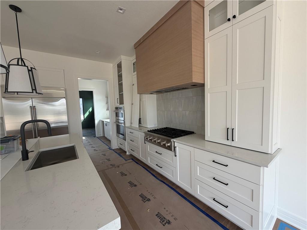Welcome to Lot 47 The Ackley by Sycamore Road Homes! Exceptional 1.5 Story on a ¾ +/- acre estate lot with a huge flat backyard ideal for a future pool, outdoor oasis, or play area. This home features a 4-car garage with pedestrian door to the backyard and a dramatic 3-story open stairwell with a stunning floor-to-ceiling picture window. Striking black windows, intricate woodwork with accent lighting, and engineered hardwoods on the main floor add custom style throughout. The spacious main level includes a large study/flex room, mud room, and an open Great Room, Kitchen, and Dining area with tall ceilings. The kitchen is appointed with a large island, high-end appliances, 48" refrigerator/freezer, gas cooktop, butler’s pantry, and walk-in pantry. The main-level primary suite offers dual vanities, a freestanding tub, large walk-in shower with designer glass surround, and laundry access connected to both the hall and primary closet. Upstairs features a huge loft, 3 large bedrooms with walk-in closets, including one en-suite, plus a Hollywood-style shared bath. Lower level is stubbed for a full bath and offers room for a 5th bedroom, workout space, and large family room. Built with 2x6 exterior walls, upgraded Spider insulation, and 400-amp service for future pool potential.