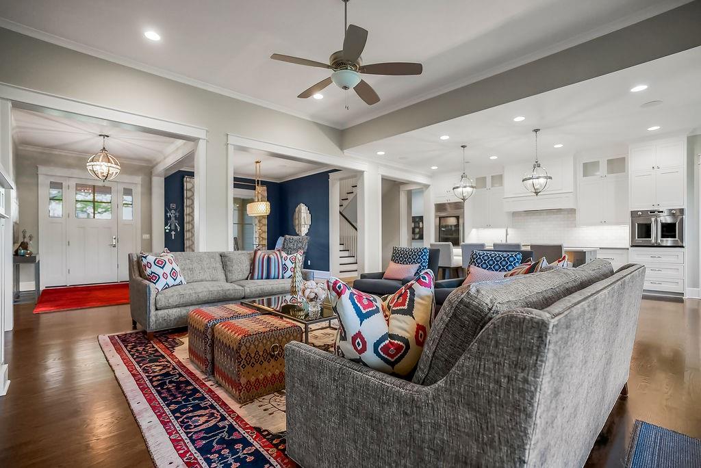 Exquisite Design, Elevated Living & Unmatched Entertaining Spaces. This custom home offers thoughtful upgrades & impeccable craftsmanship throughout. Situated on an expansive lot, it’s designed for both everyday comfort & effortless entertaining. The striking exterior showcases Hardie Board siding with stone accents, enhanced by professional landscaping, ambient lighting & inviting outdoor living spaces. Enjoy a covered patio, screened-in upper deck & covered lower-level deck with composite decking. A built-in outdoor kitchen, gas-start firepit, surround sound & access to the expansive yard create the ultimate backyard retreat. An oversized side-entry 3-car garage with custom built-ins and a lower-level utility garage add convenience. Inside, high-end finishes and smart features include whole-home surround sound, lutron lighting, central vac, dual-zone HVAC w/ humidifier, 2 water heaters & designer window treatments w/ select motorized shades. Wide-plank wood floors and solid wood stair treads elevate the main level. The chef’s kitchen features inset cabinetry, quartz countertops, an oversized island & premium appliances including Sub-Zero & GE Monogram. The butler’s pantry offers a wine fridge & great counter & additional cabinets. The hearth room with fireplace & built-ins, plus a formal dining room, offer warm gathering areas. The main-level primary suite includes vaulted ceilings, deck access & a spa-like bath with heated floors, marble finishes, dual vanities, dual water closets, & an oversized shower. The custom walk-in closet is amazing. Upstairs, all bedrooms are generously sized w/ ensuite baths, walk-in closets, plus a second laundry room & loft workspace. The walkout lower level is built for entertaining with a spacious family room, full wet bar/kitchenette & a 1,000+ bottle wine cellar, along with flexible living space, guest accommodations & ample storage. This one-of-a-kind home blends luxury, comfort & functionality with exceptional detail throughout.