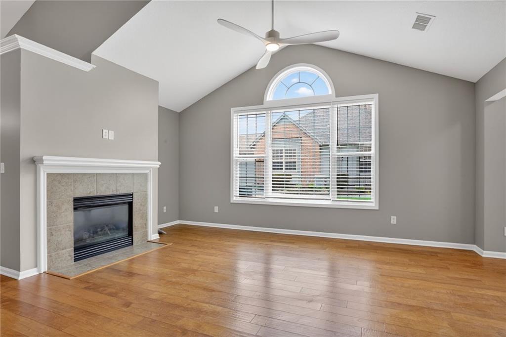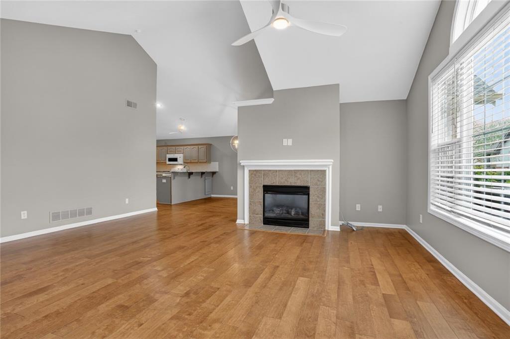 Welcome to this elegant and well-maintained villa offering the ease of true one-level living in a beautifully landscaped, maintenance-provided community. This updated unit features gorgeous hardwood floors throughout and brand new interior paint, creating a fresh and inviting feel from the moment you step inside. The expansive primary suite includes an en suite bathroom with a walk-in shower, lovely vanity, and a spacious walk-in closet. A second bedroom—located just off the main living area—offers flexibility as a guest room, office, or hobby space. The vaulted living room is warm and inviting with its cozy fireplace and large windows that bring in abundant natural light. The kitchen provides excellent cabinet storage, generous counter space, and a convenient eat-in bar area perfect for everyday dining. Adjacent to the kitchen, the fully enclosed sunroom offers a peaceful spot for morning coffee, reading, or simply relaxing indoors with outdoor views. Additional features include a large 2-car garage and a brand-new roof for added peace of mind. Brand new roof and concrete in front of the garage door and porch. The community offers attractive amenities such as a clubhouse and pool, all set within a lovely, tree-filled neighborhood maintained for you. Enjoy comfort, convenience, and low-maintenance living in this welcoming villa—ready for you to move right in.