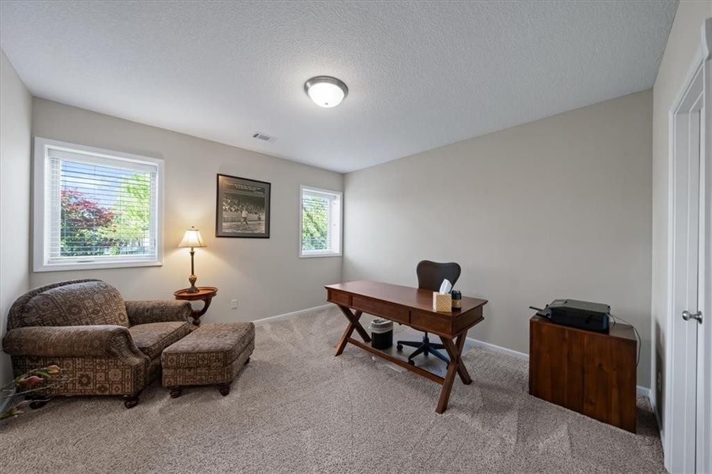 Meticulously maintained, this stunning reverse 1.5-story offers quality finishes and effortless main-level living. The Spacious great room showcases a coffered ceiling and gas fireplace, that opens to the kitchen featuring a large island with breakfast bar, walk-in pantry, granite counters and gas range. Wide plank hardwood flooring throughout most of the main level! The dining area walks out to a covered deck complete with fireplace and ceiling fan, overlooking the level, fenced backyard—an ideal setting for relaxing or hosting. The primary suite is a true retreat with a walk-in closet, dual vanity with built-ins, whirlpool tub, and beautifully tiled shower and floors. A second bedroom, full bath, and convenient laundry room complete the main level. The finished walkout lower level expands the living space with a generous family room and wet bar, plus two additional bedrooms—one with a private ensuite bath and the other with a full bath just steps away, perfect for guests or family. Community amenities include a clubhouse, swimming pool, tennis/pickleball courts and play area. Fantastic location on a culdesac lot with convenient access to premier shopping, dining, major highways and Top-rated Blue Valley Schools!