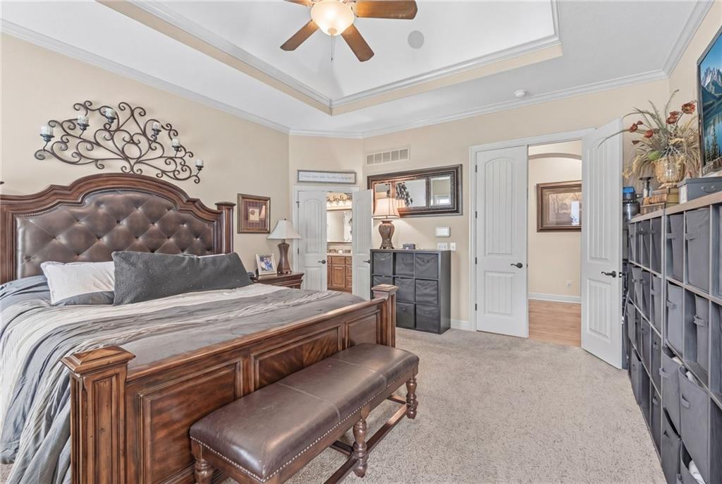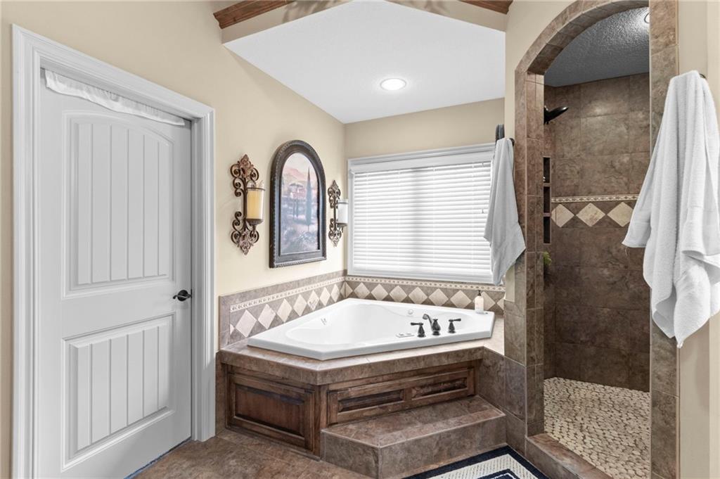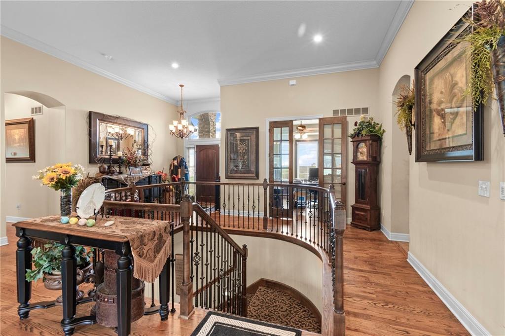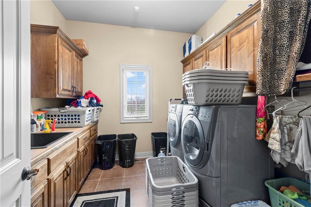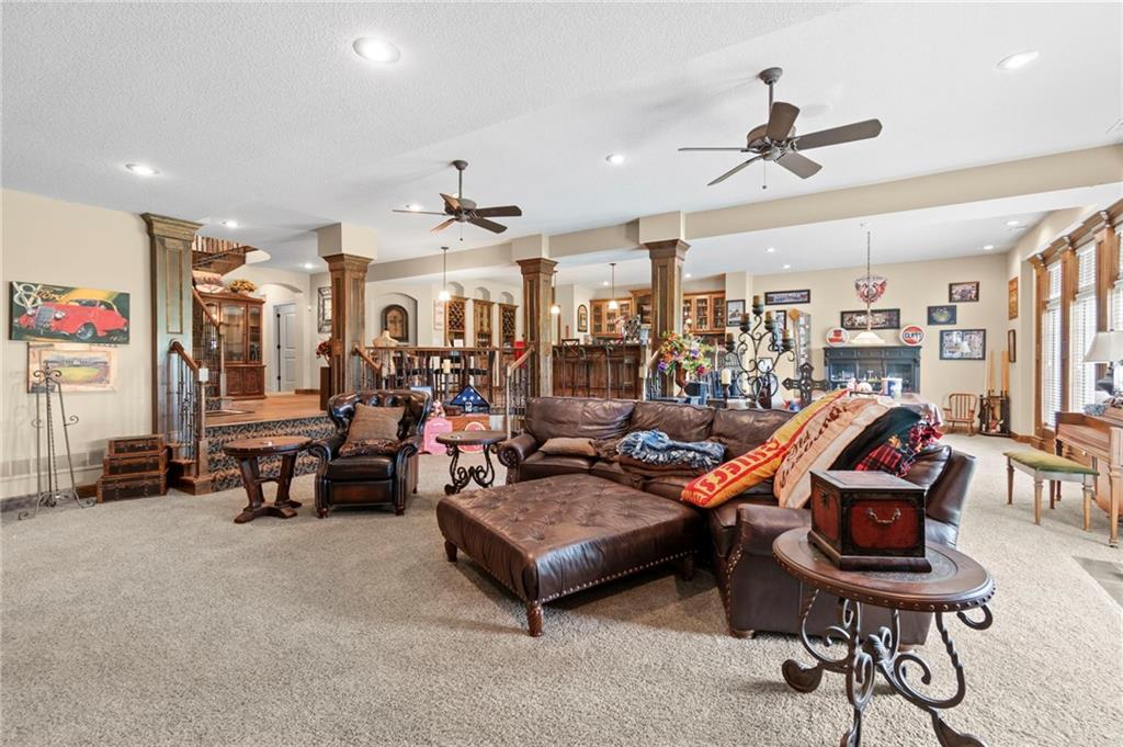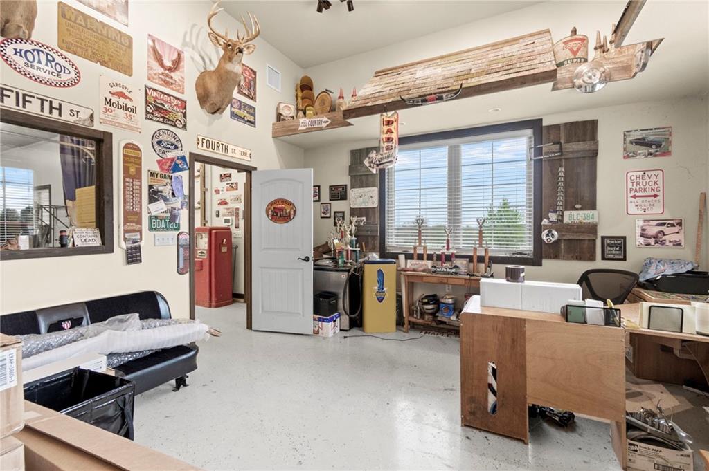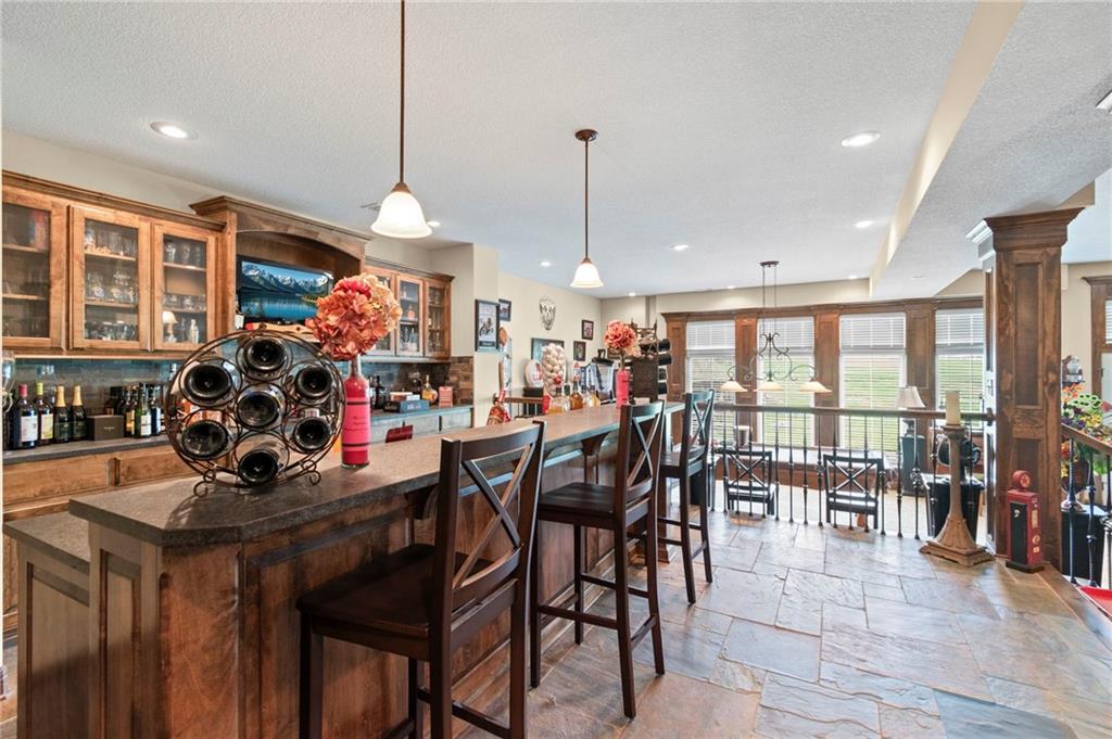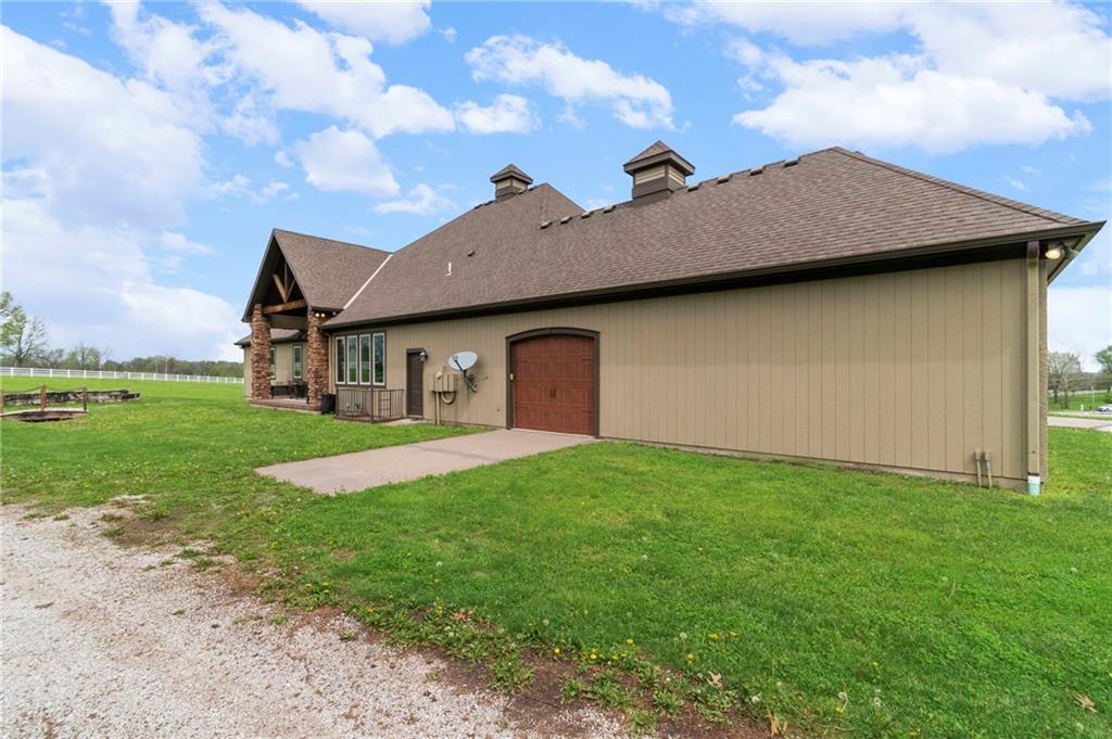 Set on nearly five acres just outside of town, this Kearney estate checks every box and then adds a few you didn’t know you needed. Inside, the main living space opens into a layout that feels open and intentional. The living room, dining area, and kitchen flow together seamlessly, anchored by hardwood floors and natural light. A fireplace with custom built-ins adds a focal point.The kitchen is built for real life and gatherings. Granite countertops, custom cabinetry, double wall ovens, and an oversized island make prep and hosting easy. A walk-in pantry keeps everything tucked away. The main level offers flexibility with a front room that can serve as a bedroom, formal dining space, or office. Two additional bedrooms share a well-designed bath with separate vanity areas. The primary suite is set apart, featuring a large walk-in closet and spa-like bath with soaking tub, tiled shower with dual heads, and double vanity. Laundry and a half bath complete the level. Downstairs, the finished lower level is built for hosting. A full wet bar with a large island opens into a second living area with its own fireplace. A private bedroom and bath make it ideal for guests or multi-generational living, along with a half bath and flexible space for a gym, office, or sixth non-conforming bedroom. Storage is extensive, with a suspended slab design offering approximately 55x31 of storage space, plus an additional 21x11 area that also functions as a secure storm shelter. The six-car attached garage provides plenty of space, and the detached 50x60 shop adds even more with its own office, bathroom, car wash, and paint bay, plus an unfinished upper level. Built with intention, the home features structural beams for wide open spaces, twelve-foot ceilings on both levels, geothermal heating, and energy-efficient windows. Mineral rights convey with the property, including oil and water discovered during the geothermal process and registered with the Missouri Department of Natural Resources.