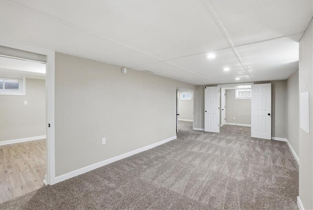 The main level features three bedrooms, a full bathroom, a bright kitchen, and two inviting living areas. Interior stairs lead to a basement, offering a third living space and two non-conforming bedrooms, a full bathroom, and a dedicated laundry area. Updates include stunning tile work, modern ceiling fans, fresh interior paint, and vinyl windows throughout.
