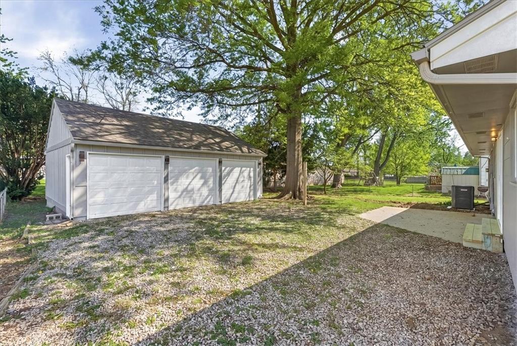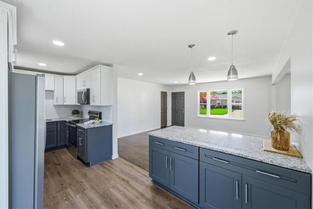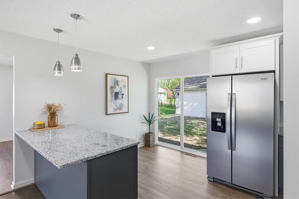 Adorable FULL remodel with all the big-ticket items DONE! From the moment you arrive, you’ll love the fresh exterior paint, all-new interior paint, new windows, and brand-new roof. Step inside to find refinished hardwoods, LVP flooring throughout, and a stunning all-new kitchen featuring granite countertops, gorgeous cabinetry, an island, stainless steel appliances, and a refrigerator that stays. The bathroom has been completely updated with beautiful tile finishes, and new doors add a fresh touch throughout. The finished basement adds valuable living space with a family room, full bath, non-conforming fourth bedroom, laundry, and generous storage. Mechanical updates include a new A/C unit, a 200-amp electrical panel, and an updated plumbing stack. Furnace and water heater appear newer; ages unknown. Bonus: oversized detached 3-car garage/shop with new garage doors, exterior paint, and new roof—perfect for extra storage or projects. This one is truly move-in ready!
