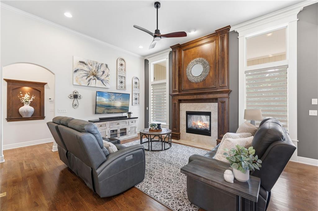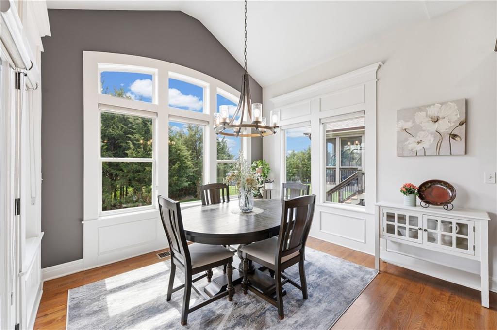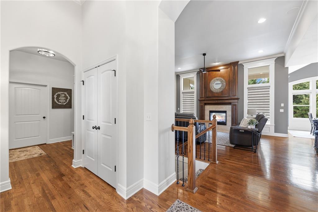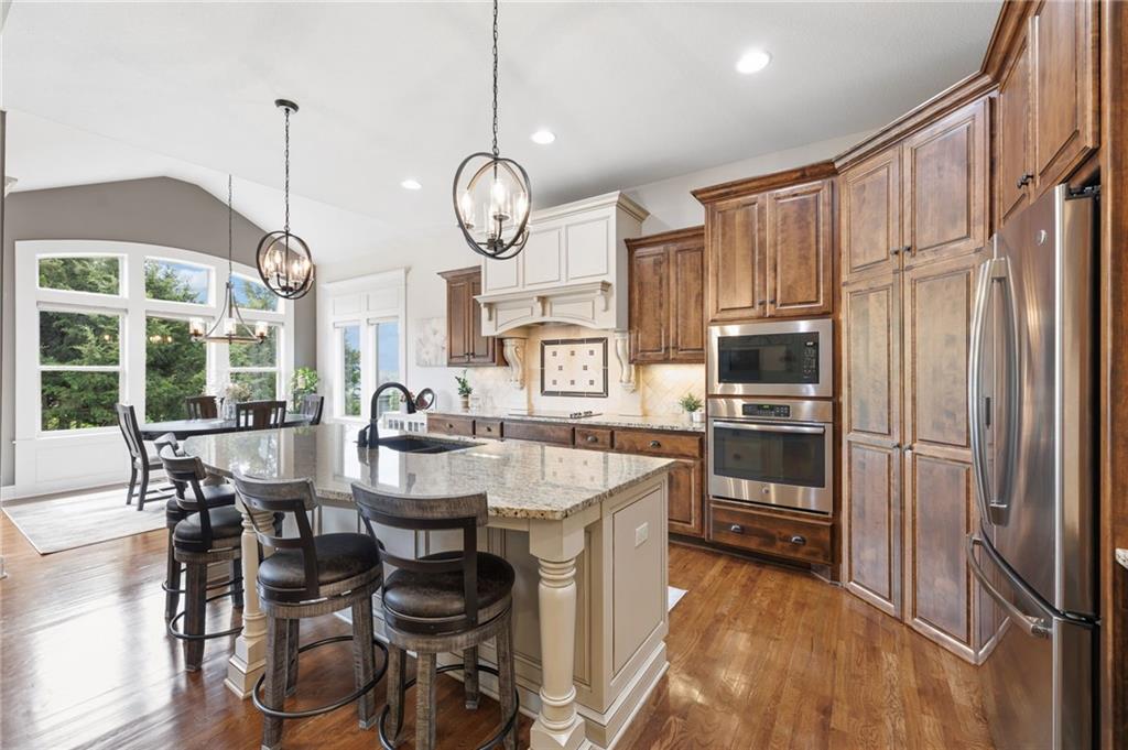 Welcome to this stunning former model home by James Engle Homes, showcasing the highly sought-after Emery reverse floor plan and loaded with gorgeous upgrades throughout. This beautifully designed 4-bedroom home offers the perfect blend of luxury and functionality. The main level features a spacious, light-filled great room with rich wood flooring and a striking see-through stone fireplace that extends to the covered, maintenance-free deck—creating a warm and inviting atmosphere both indoors and out. The gourmet kitchen is equally impressive, complete with granite countertops, double ovens, and a generous walk-in pantry, making it perfect for everyday living and entertaining. The luxurious primary suite offers a private retreat with dual vanities and a custom-tiled walk-in shower. The finished walkout/walkup lower level expands your living space with a large rec room, wet bar, two additional bedrooms, and a full bath—ideal for guests or entertaining. Step outside to enjoy exceptional outdoor living, including the covered deck with fireplace access and a beautifully designed stone patio with a fire pit, all backing to a serene tree line for added privacy. Additional highlights include a newer roof (just 2 years old) and access to fantastic neighborhood amenities, including a community pool. This home truly offers comfort, style, and convenience—don’t miss your opportunity to make it yours!