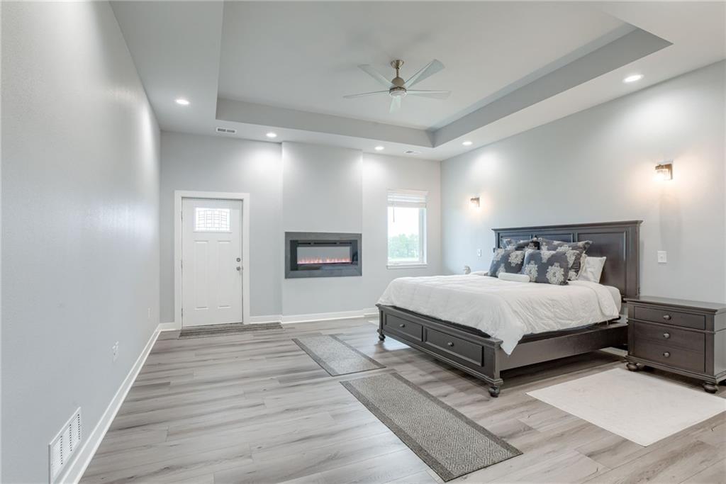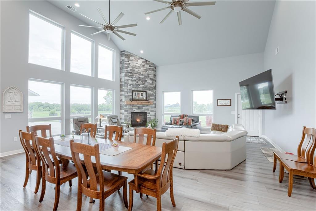 Discover the convenience of this picturesque estate located just off exit 40 in Lathrop MO. This newly constructed home offers over 4400 square feet of livable space and just over 5 acres with and livestock facilities. Ideal for business owners, large families, or those wanting a quick commute to Kansas City or the airport. The stunningly designed home offers 4 bed, four bathrooms, two fireplaces and a massive great room perfect for family living and entertaining guests. Inside there is a blend of marble and high end flooring that adds elegance and durability throughout. The heart of the home features a state of the art kitchen with an 11 foot custom granite island, walk in pantry, and personalized kitchen cabinetry. The expansive concrete driveway and parking pad outside the 4 car garage provides extra parking for additional guests. Additionally the main floor offers oversized hallways and doorways making it completely handicapped accessible. Outside the home there is a 30x40 barn with a fully fenced paddock with water spigots already suitable for livestock or horses. Additional highlights include a vault style safe room, a dedicated office space and an integrated Generac backup generator, ensuring your home remains comfortable and functional in any situation. This property seamlessly combines luxury security and practically practicality making it a true sanctuary. homeowner is also willing to sell adjoining acreage for an cost. Don't miss the opportunity to own this remarkable estate just 30 minutes from Kansas City and the MCI Airport. Schedule your showing today Inexperience all this stunning home has to offer!