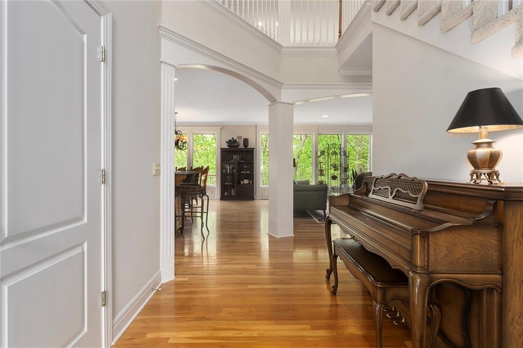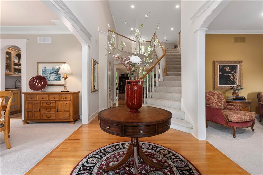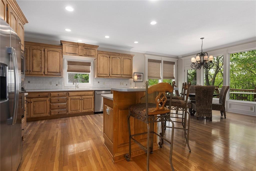 Stunning one-owner custom-built 1.5-story home backing to heavily treed greenspace, offering privacy and picturesque views! With over 4,000 sq ft, this thoughtfully designed home features a bright, open floor plan perfect for everyday living and entertaining. The impressive two-story entry showcases upgraded trim work throughout and opens into a spacious great room complete with built-ins and a cozy fireplace. The gourmet kitchen is a dream, featuring a large walk-in pantry, butler’s pantry, and seamless flow into the formal dining room. The main-level primary suite is a true retreat with a vaulted ceiling, wall of windows, and generous space to unwind. A first-floor office adds convenience and flexibility. Upstairs, you’ll find a spacious loft area and generously sized secondary bedrooms—all with walk-in closets. Additional highlights include 3.5 baths, an oversized laundry room, and a huge unfinished basement ready for your personal design and expansion. Located in The National Golf Club community in the heart of Platte County, this home also features a brand new architectural shingle roof. Don’t miss this exceptional opportunity to own a beautifully maintained home in a highly sought-after location! This home has been meticulously maintained.