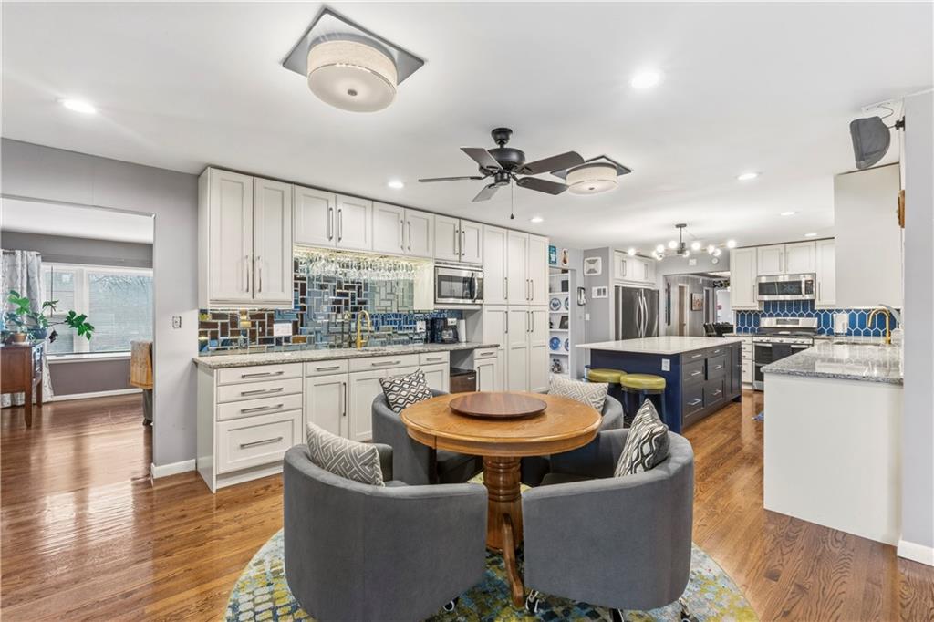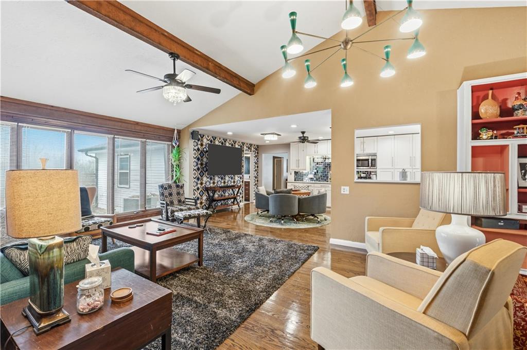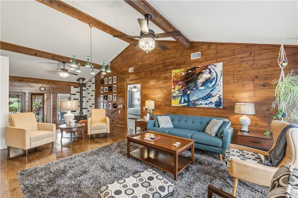 Is there a 4-bed ranch in Excelsior Springs with acreage, modern updates, and space to entertain? This beautifully updated home offers over 3,500 finished sqft on the main level, set on 1.5 acres with expansive indoor living, curated outdoor spaces, and rare features including a 3-car garage and 30x30 barn. Welcome to this 4-bed ranch home in Excelsior Springs under $600K, a fully updated mid century modern retreat designed for both everyday comfort and elevated entertaining. Spanning over 3,500 sqft on the main level, the home features a newly expanded kitchen with quartz countertops, new cabinetry, updated appliances, and a large island that opens seamlessly to the living room with a wood burning stove. A generous dining room accommodates large gatherings, while the all seasons room doubles as a greenhouse and opens to an expansive patio and deck. The main level also includes a laundry room with half bath and a versatile bonus room ideal for an office, craft space, or study. The private primary suite offers a spacious bath and abundant closet space, complemented by three additional large bedrooms and a total of 3.5 baths. The unfinished basement provides excellent storage and includes a secondary kitchen for canning or extended cooking needs. Situated on 1.5 acres, the outdoor experience is unmatched with lush, resort style front landscaping, a trellis seating area, and a backyard oasis featuring multiple patios and decks, walking trails, garden beds, a pond, and a chicken coop. Additional highlights include a 3-car garage and a 30x30 barn for equipment, hobbies, or extra storage. This 4-bed ranch home in Excelsior Springs under $600K offers a rare blend of modern updates, acreage, and lifestyle flexibility.