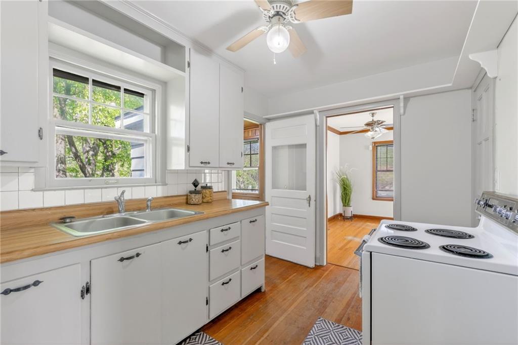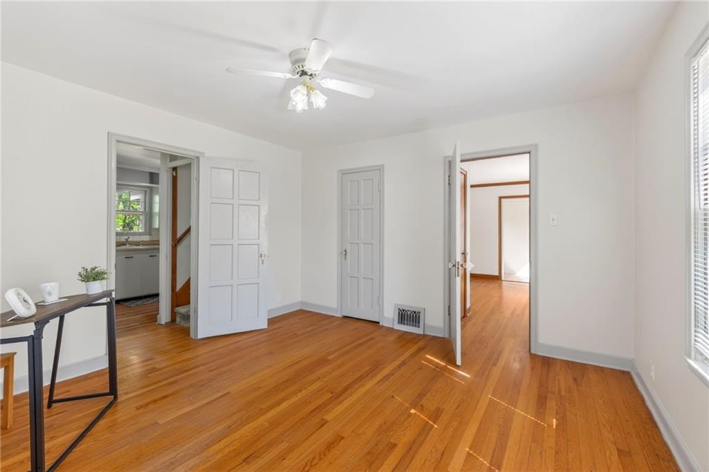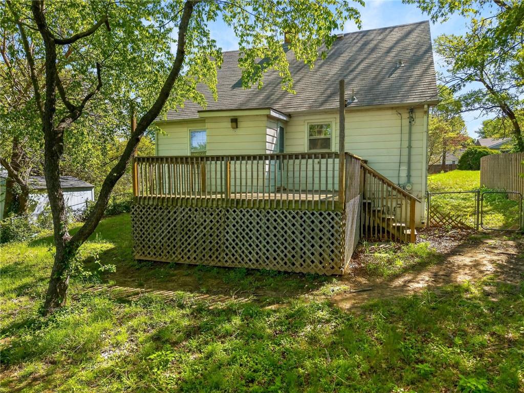 Solid 1.5-story home in the Cooley Highlands neighborhood of KC North offering character, space, and great potential. Beautiful original hardwood floors run throughout much of the home, with just over 1,000 square feet ready for your personal updates and finishing touches. The main level features a cozy living room with fireplace and custom mantel, adjacent sunroom or den, primary bedroom, full bath, and roomy kitchen. Upstairs, the expansive loft-style second bedroom offers flexible space for a bedroom, office, playroom, or hobby area. Ample fenced backyard provides room to enjoy outdoors. The home has Central heat and air conditioning, the window units are supplemental. Convenient location close to shopping, schools, and easy highway access. A solid home with great bones and an excellent opportunity to build equity with a little TLC.