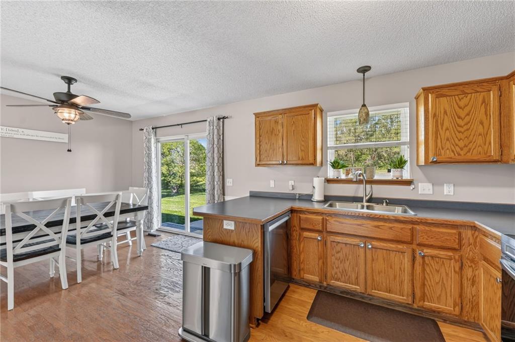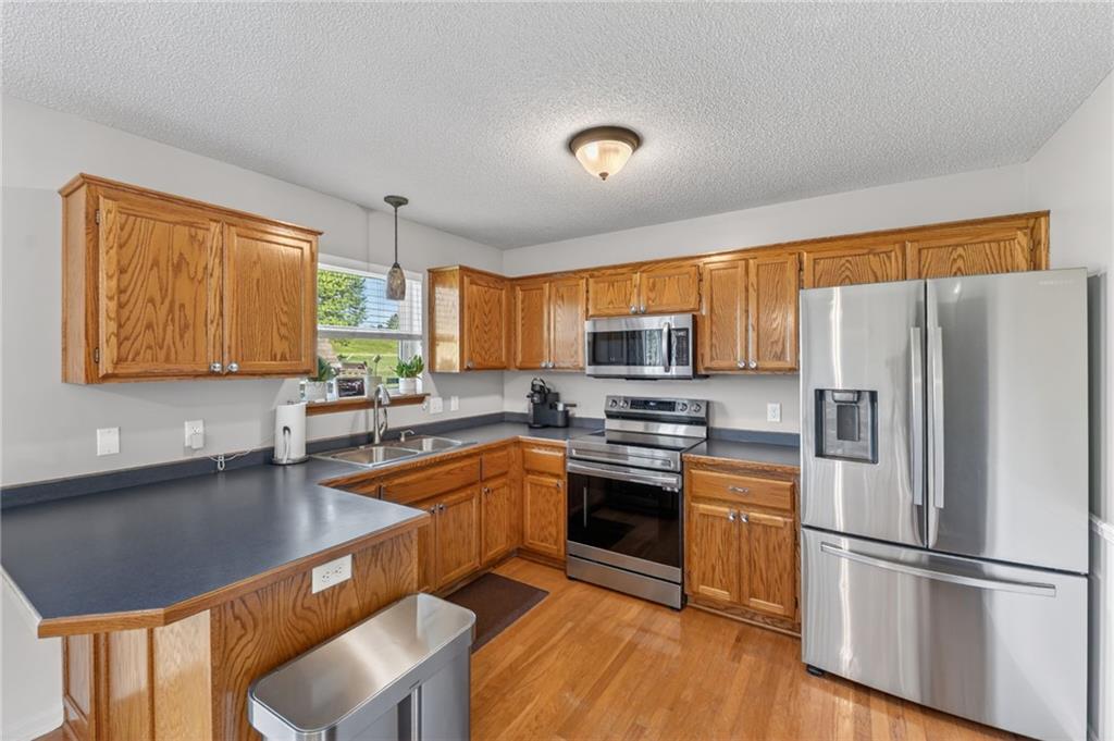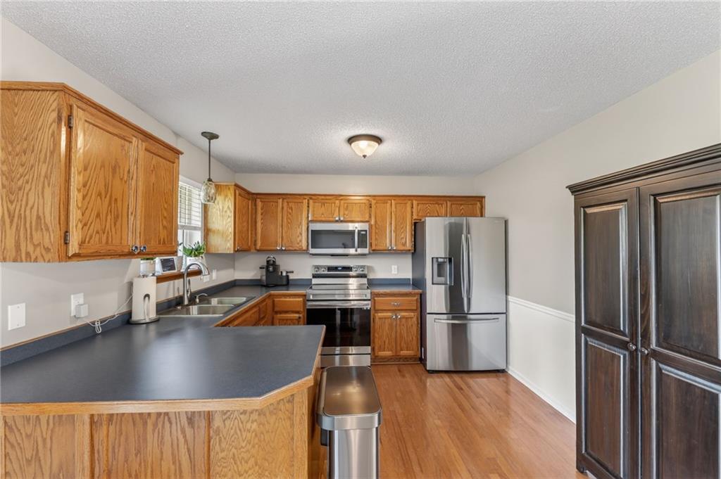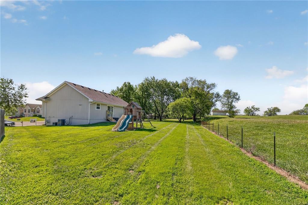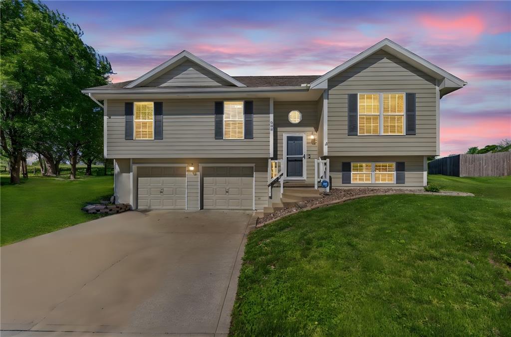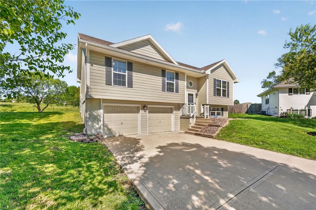 DARLING split level in COVETED MISSION RIDGE subdivision, Kearney schools!! CUL-DE-SAC LOT w/ HUGE, PRIVATE BACK YARD backing to church property! NEW CARPET & PAINT THROUGHOUT! MAIN LEVEL LIVING features PRIMARY SUITE, secondary beds/bath, kitchen & great room. 5 year roof, ALL APPLIANCES including refrigerator & washer/dryer stay! LL is finished w/ REC ROOM for extra living space & half bath for guests. Close to schools, highways & retail districts. Nest Thermostat, ADT Security System, Ring Doorbell, Ring Floodlight, Smart Garage Door Openers, Smart Appliances all stay! HURRY!