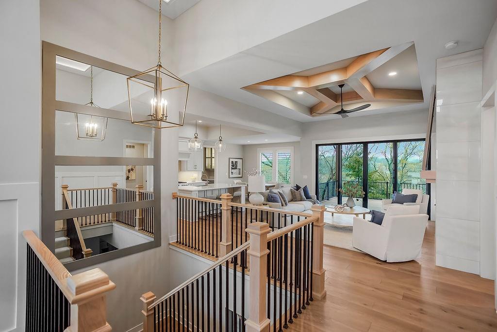 Like New and perfectly positioned on a premium lot backing to the award-winning Shadow Glen Golf Course, this stunning reverse 1.5-story home offers the ideal blend of luxury, comfort, and thoughtful design. With 5 bedrooms and 4 full baths, this home is crafted with beautiful details throughout. The main level features a spacious primary suite with a spa-like feel, complete with a walk-in closet that conveniently connects to the laundry room. Two additional bedrooms are located on the main level, including one with its own private bath—perfect for guests or a home office. The heart of the home showcases a large quartz-topped island, expansive pantry, and open living spaces designed for both everyday living and entertaining. The walkout lower level is an entertainer’s dream, featuring a full bar area, generous recreation room, plus two additional bedrooms and a full bath. You’ll also find two separate storage areas, including a storm shelter for added peace of mind. Step outside to take in sweeping golf course views overlooking Hole #5, creating a serene and picturesque backdrop. Whether hosting gatherings or enjoying a quiet evening at home, this property offers the perfect setting. Welcome home.